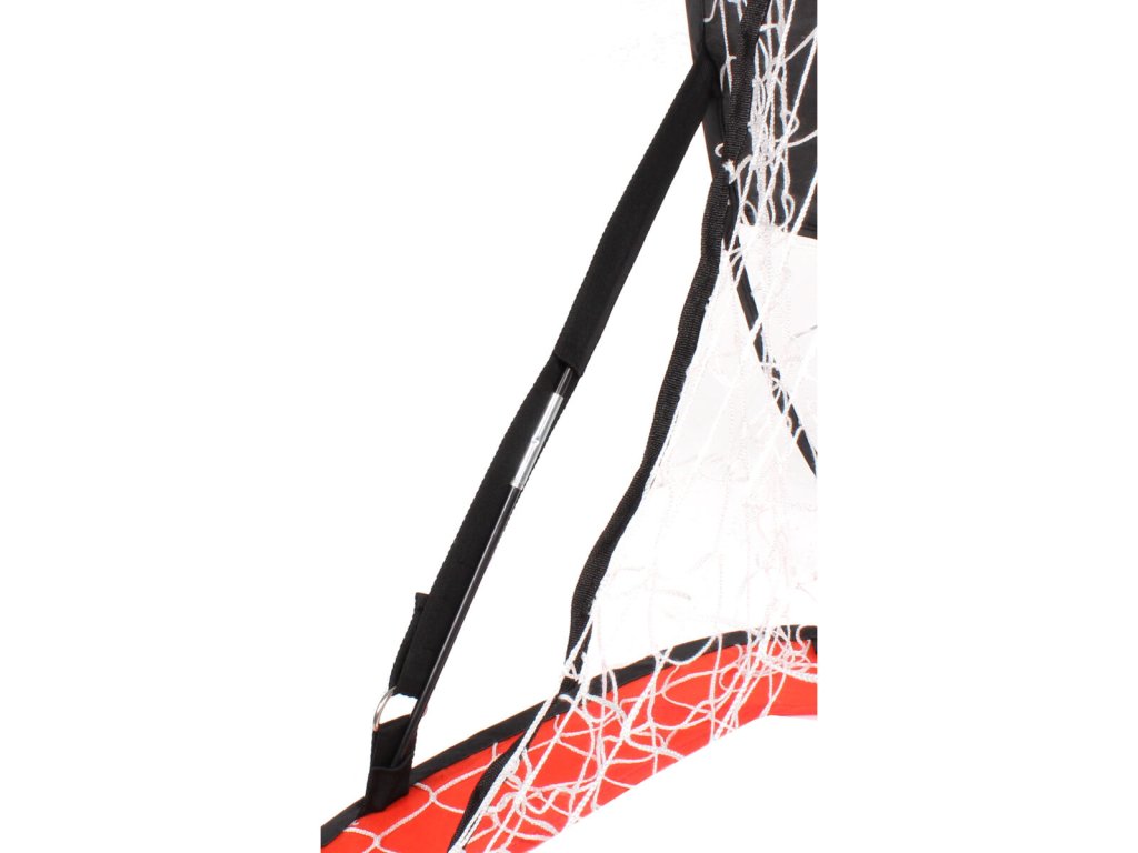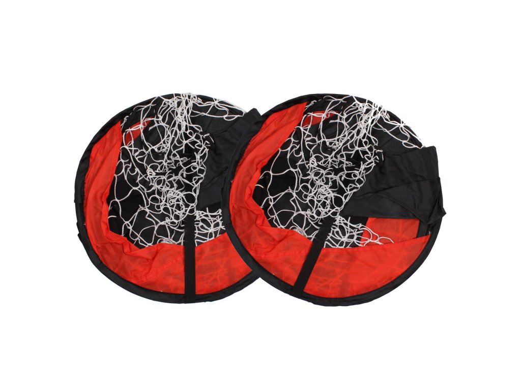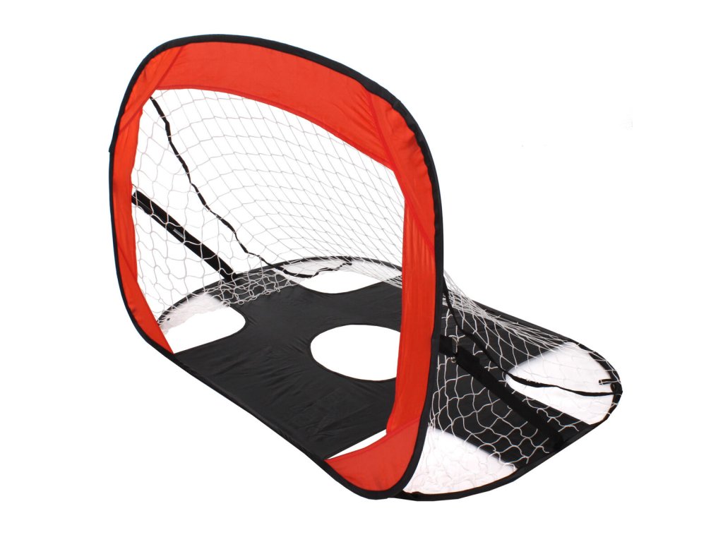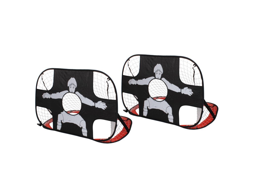 Master Pop Up Set je sada dvou přenosných skládacích branek vhodných pro všechny hráče a fanoušky nejen fotbalu, ale i různých druhů míčových her. Výjimečnost této branky spočívá v tom, že na jedné straně branky je plachta, vykrývající určitá místa v brance pro obtížnější vstřelení gólu. Na plachtě je vyobrazený brankář, který má za úkol rozptylovat útočníka. To nutí hráče soustředěnosti a přesného míření doprostřed, do šibenice nebo k tyči. Po překlopení branky je opět branka bez brankáře a vy můžete střílet kamkoliv. Branka se skvěle hodí pro uspořádání dovednostních her a trénování střelby. V balení naleznete dvě branky pro hru s více hráči. Takže může pořádat zápasy proti svým kamarádům. Balení dále nabízí vzpěry které zajišťují stabilitu branky a kovové kolíky, které vám pomohou branku ukotvit k zemi. Vzhledem k nízké hmotnosti a méně robustní konstrukci, doporučujeme používat molitanový nebo měkčený míč. Velikost branky: 120 x 80 x 80 cm.Doplňkové parametry