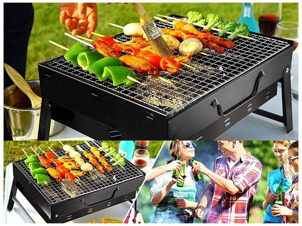 Cestovní gril přenosný skládací kufr na dřevěné uhlí kempování bbq