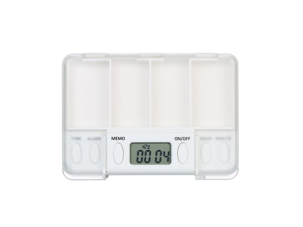 Máte zde 4 přihrádky na 4 různé typy léků. Ba co více, dokonce si můžete nastavit 4 budíky pro každou přihrádku zvlášť. V neposlední řadě lze i navolit 4 různá zvonění se symboly na LCD obrazovce pro umožnění vzít léky včas.