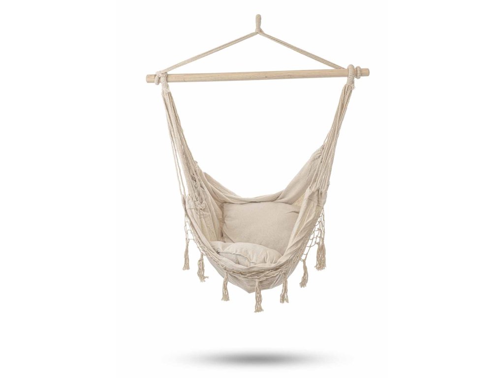 KIK KX7938 Závěsné houpací křeslo s třásněmi a polštáři - béžové