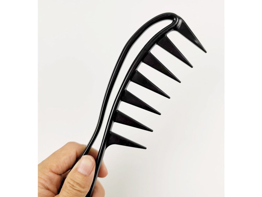 Široký kadeřnický hřeben pro rozčesávání mokrých vlasů při stříhání. Široce rozmístěné zuby netahají ani nelámou vlasy. Nezbytná pomůcka pro každý kadeřnický salon.