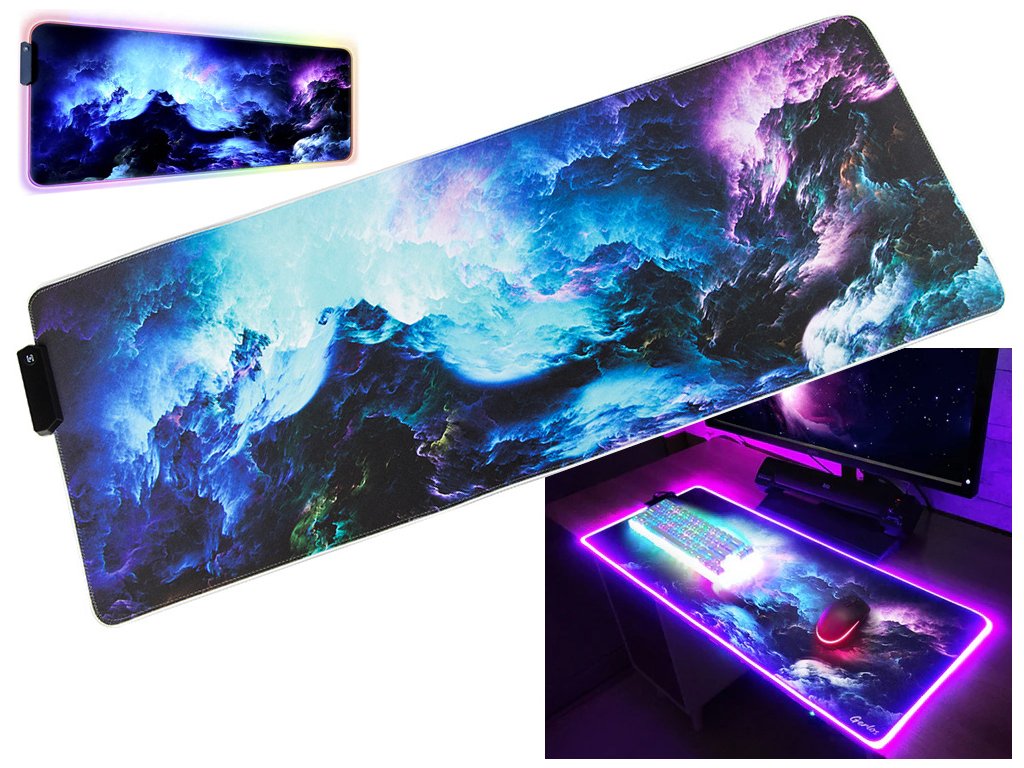 Herní LED RGB podložka pod klávesnici a myš 90 x 40 cm XXL
