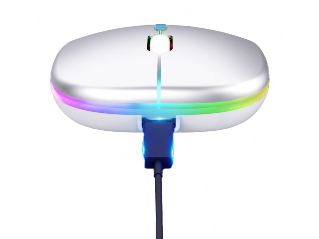 Bezdrátová optická myš s RGB LED podsvícením. Moderní vzhled myši a vysoká ergonomie zajišťují vysoký komfort používání. Napájeno vestavěnou baterií (nabíjení pomocí přiloženého kabelu). Nevyžaduje žádné další ovladače (funguje ihned po připojení vysílače k USB portu nebo přes Bluetooth). Myš má možnost měnit rozlišení DPI pomocí speciálního tlačítka.
