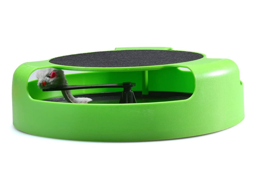 Nádherná, interaktivní hračka pro kočku - běžící myš. Extrémně jednoduchý princip fungování - po zasažení kočkou se myš dá do pohybu a kočka se ji snaží znovu chytit. V horní části hračky je také přídavné škrabadlo. Vybaveno až 3 otvory, díky čemuž je "lov" kočky ještě atraktivnější. Poskytuje našemu mazlíčkovi spoustu radosti na dlouhé hodiny (a chvíli oddechu pro majitele :)