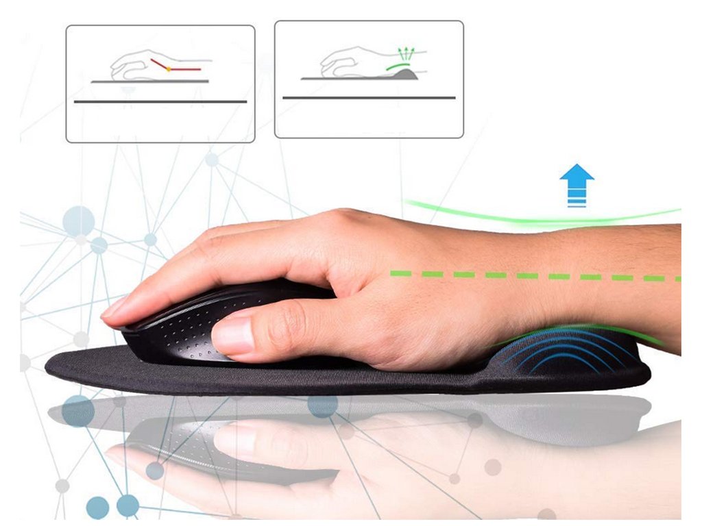Gelová podložka: Inovativní gelová podložka pod myší se přizpůsobí tvaru vaší ruky, absorbuje tlak a zabraňuje únavě.