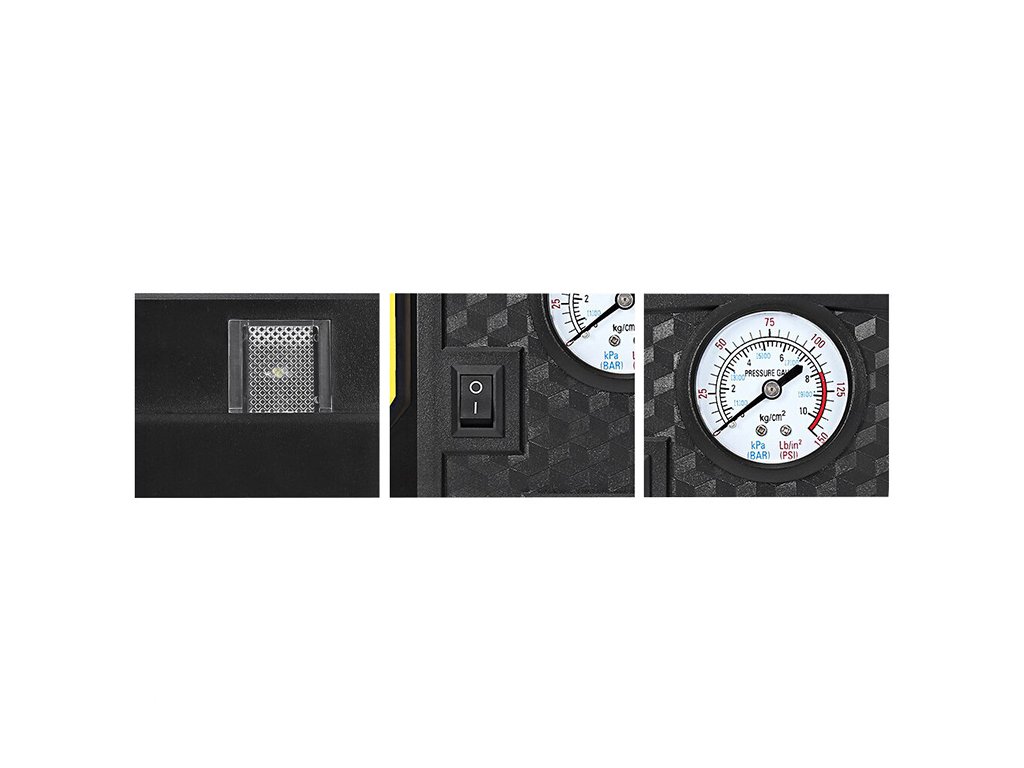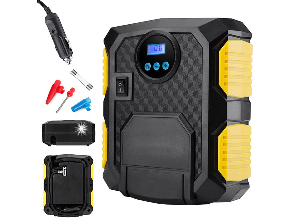 Kompresor do auta je přenosné zařízení pro huštění všech druhů pneumatik automobilů, motocyklů a jízdních kol, míčů, matrací a mnoho dalšího. To umožňují přiložené adaptéry. Díky přehlednému LCD displeji můžeme zkontrolovat, jaký je tlak v pneumatice. Pomocí tlačítek "+" a "-" můžeme nastavit pro nás vhodný tlak. Po dosažení nastaveného tlaku se kompresor automaticky vypne.