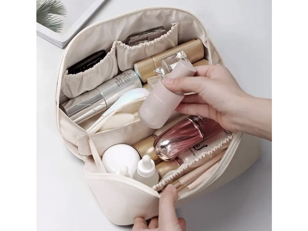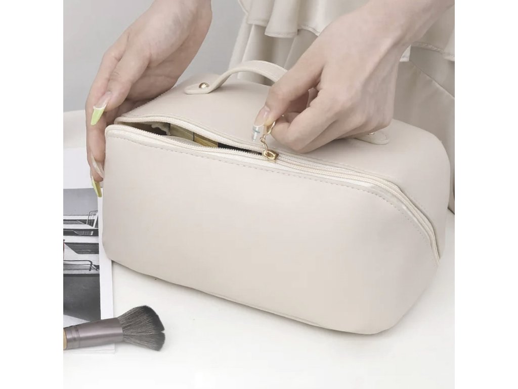 Mimořádně praktická cestovní kosmetická taštička. Vybaven mnoha přihrádkami různých velikostí a účelů. Prostorná hlavní komora zapínaná na zip. Další kapsy a přihrádky usnadní schování obrovského množství kosmetiky. Organizér je vyroben z pevného materiálu (ekokůže), který chrání obsah před náhodným poškozením. Pohodlné držadlo usnadňuje přenášení kosmetické taštičky.