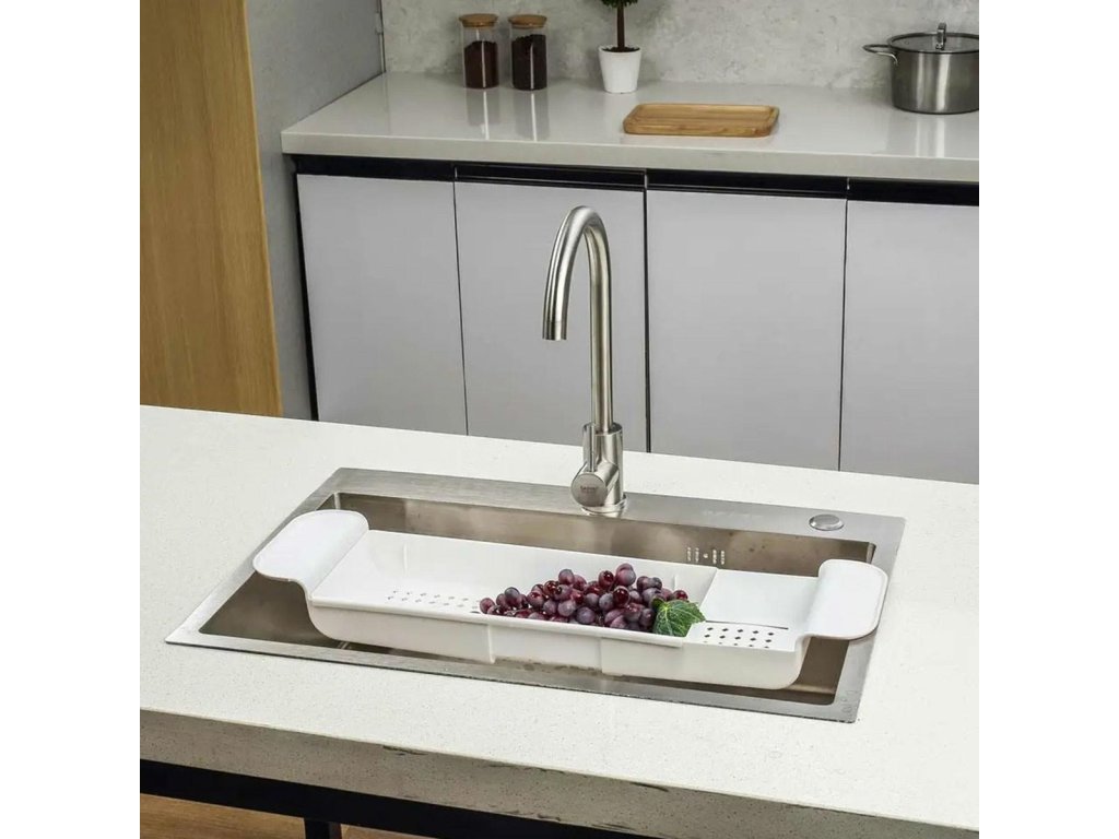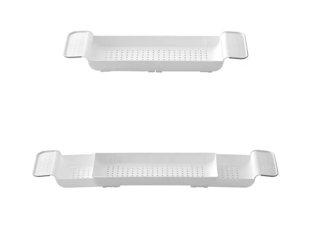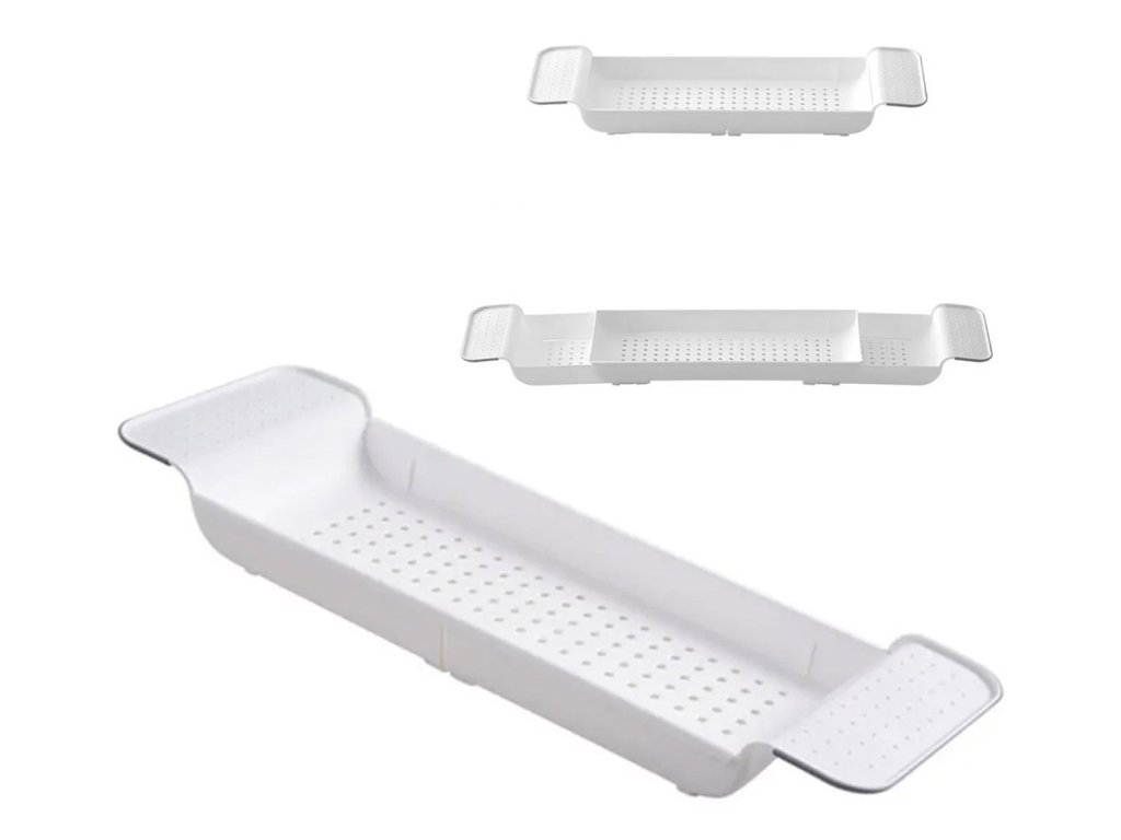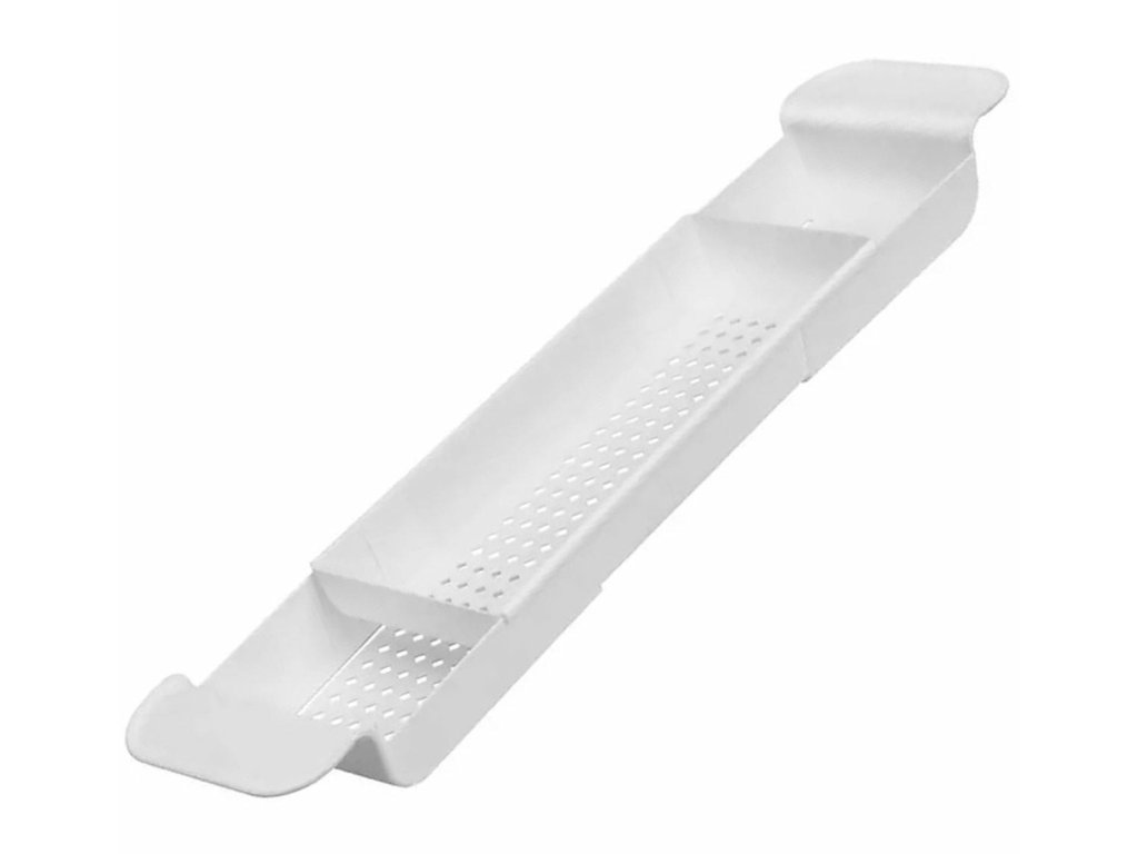 Praktická skládací koupelnová polička k zavěšení na vanu. Umožní vám chytrým způsobem ušetřit místo v koupelně. Provedení se speciální perforací usnadňuje odvod vody. Pevná madla a nastavitelná délka usnadňují instalaci napříč vanou. Výborná vychytávka, která vám umožní pohodlně uložit kosmetiku a koupací potřeby.