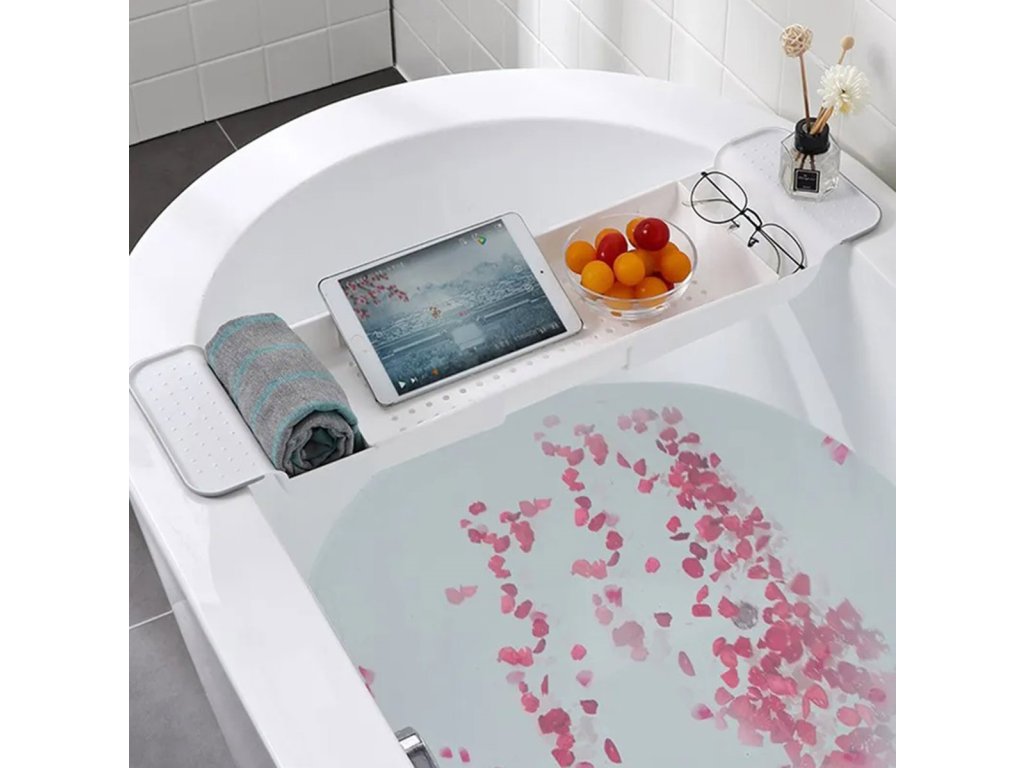 - Praktická skládací koupelnová polička k zavěšení na vanu.