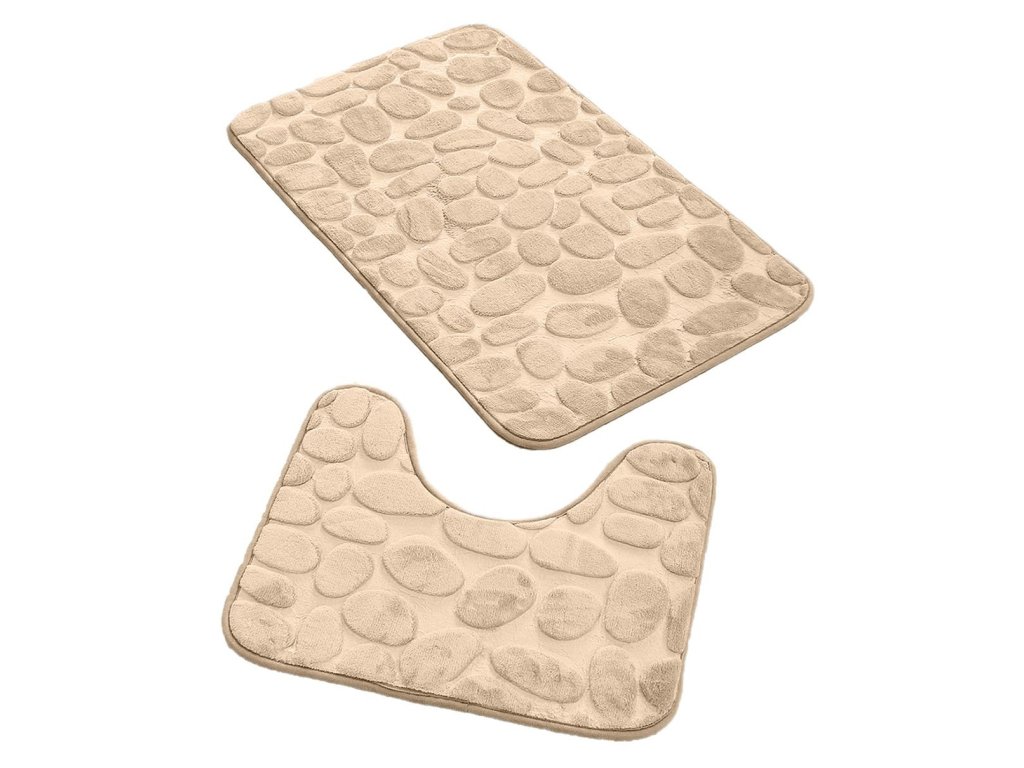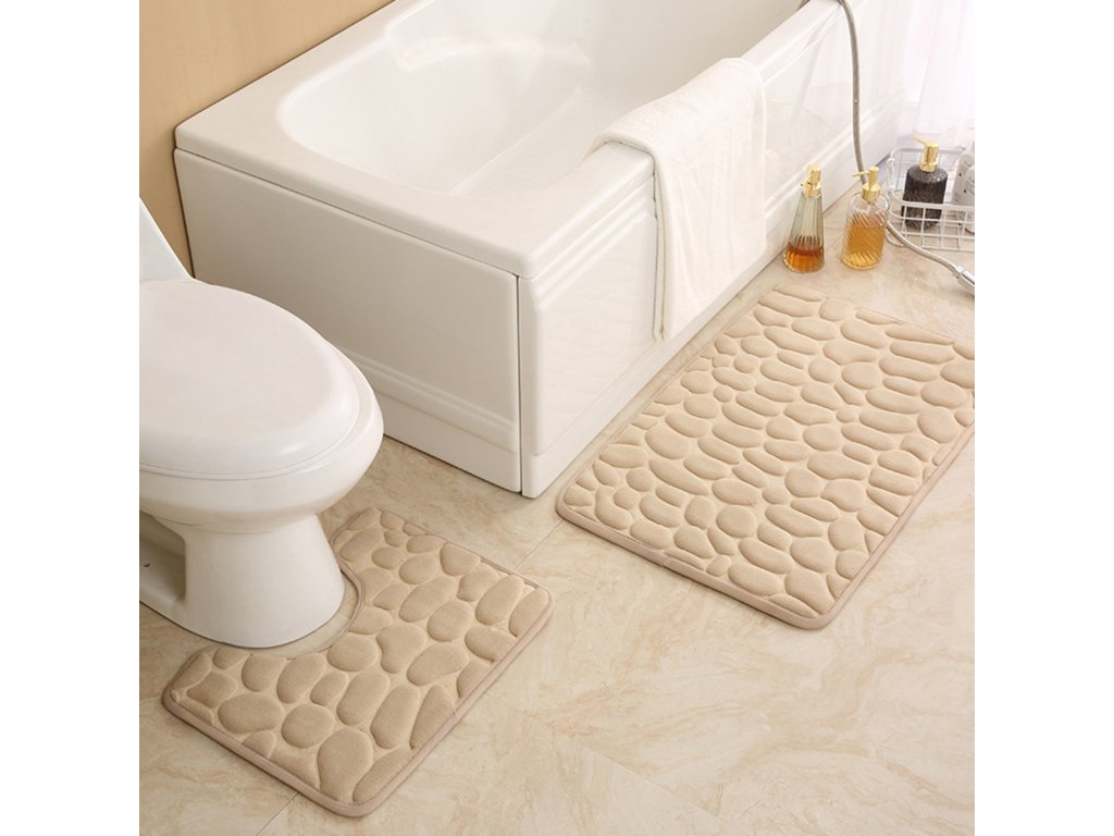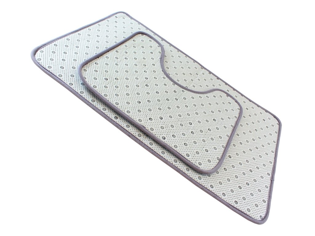 Perfektní koupelnová sada s příjemnou texturou. Set se skládá ze dvou koberečků - klasického koupelnového koberečku a potahu na záchodové prkénko. Už vás nebaví utírat stopy na mokré podlaze v koupelně? Investujte do koberečku, který účinně absorbuje vlhkost, a podlaha vaší koupelny bude suchá a ušetříte si další úklid. Díky použitému materiálu jsou koberečky měkké, pružné a příjemné na dotek. Mají také tu vlastnost, že si pamatují tvar našich nohou! Na obkladech v koupelně je rozhodně nezmrznete. Díky speciálnímu povlaku na spodní straně je protiskluzová.
