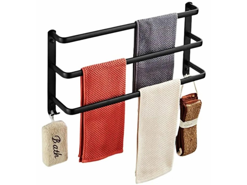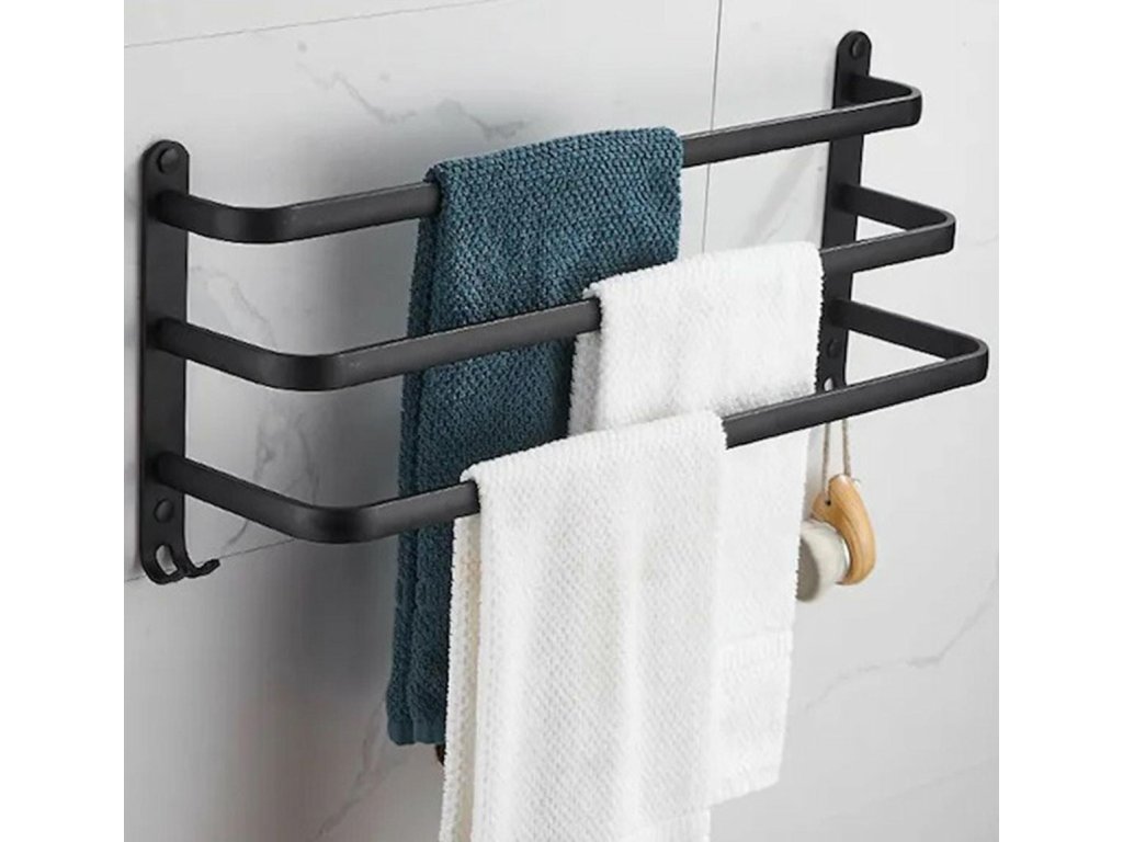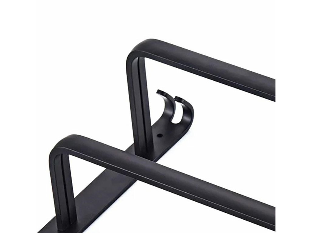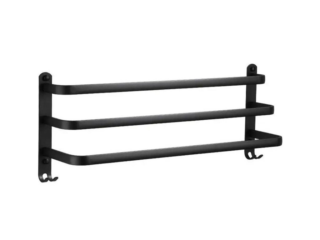 Kovový věšák na ručníky do koupelny v loftovém stylu. Vyroben z masivního hliníku s matným černým práškovým lakováním, je odolný vůči vlhkosti a oděru, což zaručuje dlouhé a bezproblémové používání. Věšák má tři ramena pro zavěšení ručníků. Dva páry dalších háčků se nacházejí na spodní straně konstrukce. Standardní montáž šrouby (všechny komponenty jsou součástí balení).