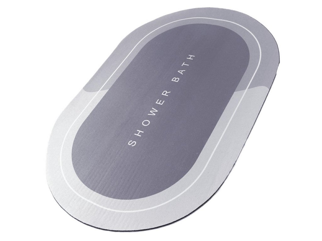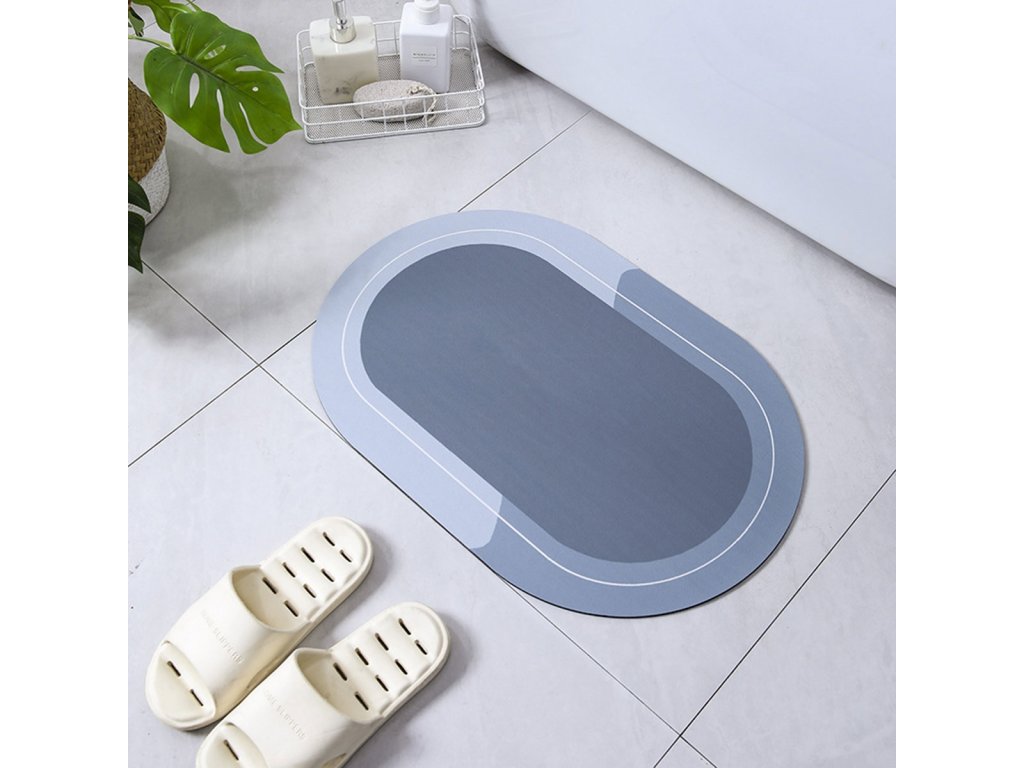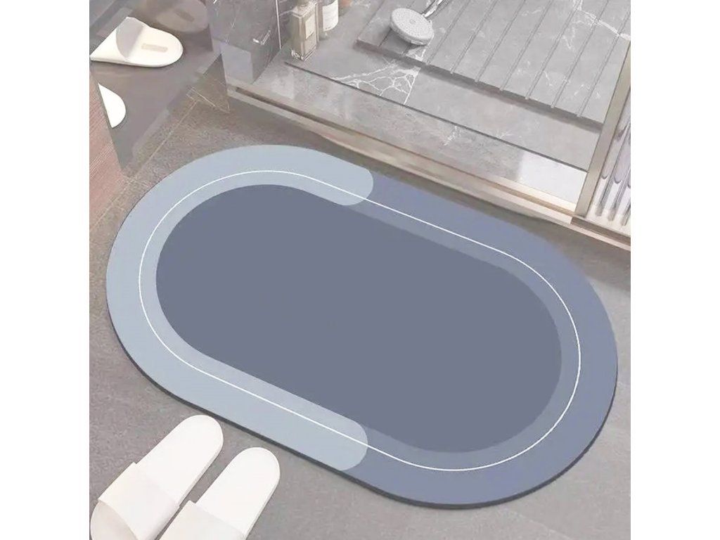 Mimořádně praktická oválná koupelnová předložka. Vyrobeno z gumy a polyesteru, velmi rychle absorbuje vodu a snadno se čistí. Protiskluzová struktura zabraňuje pohybu na kluzké podlaze a chrání před pádem. Už vás nebaví utírat stopy na mokré podlaze v koupelně? Investujte do koberečku, který účinně absorbuje vlhkost, a podlaha vaší koupelny bude suchá a ušetříte si další úklid.