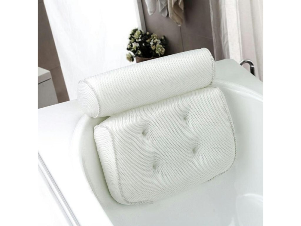 Tento koupelový polštář je vyroben z prodyšného síťovaného materiálu. Poskytuje neuvěřitelné pohodlí při koupání tím, že poskytuje dostatečnou oporu pro hlavu, ramena a krční páteř. Materiál propouští vzduch a vodu, čímž zabraňuje růstu roztočů a plísní. Díky přísavkám na zadní straně polštáře dokonale přilne k povrchu vany.
