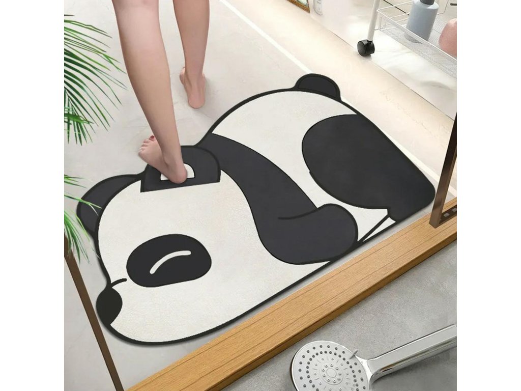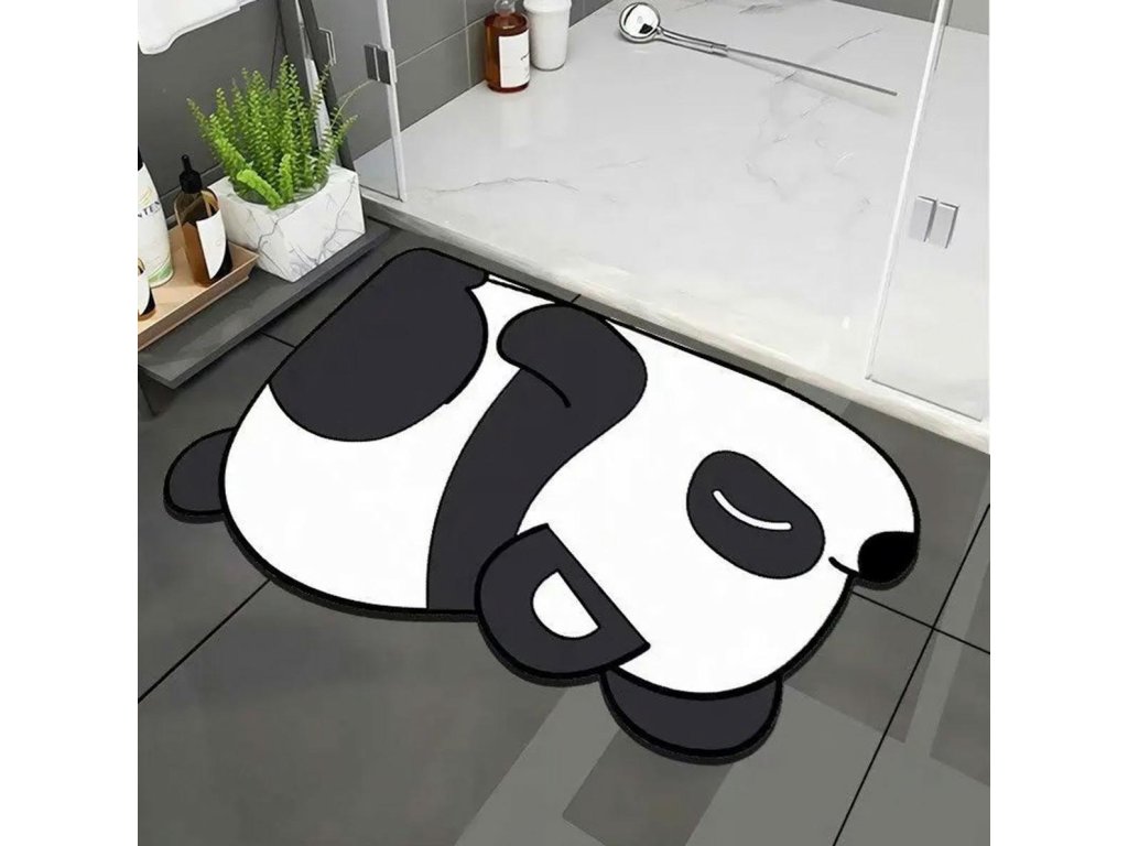 Perfektní koupelnový kobereček se vzorem pandy. Už vás nebaví utírat své stopy na mokré podlaze v koupelně? Investujte do koberečku, který účinně absorbuje vlhkost, a podlaha vaší koupelny bude suchá a ušetříte si další úklid. Díky použitému materiálu jsou koberečky měkké, elastické a příjemné na dotek. Na koupelnové terakotě vám rozhodně neumrzne! Díky speciálnímu povlaku na spodní straně je protiskluzová.