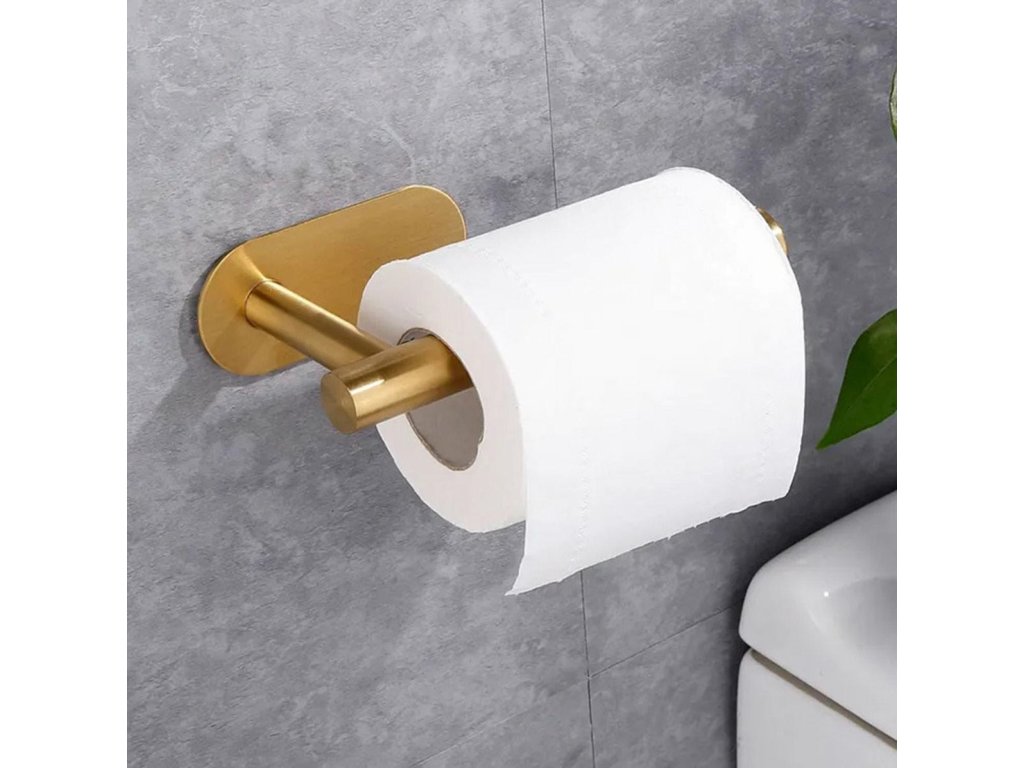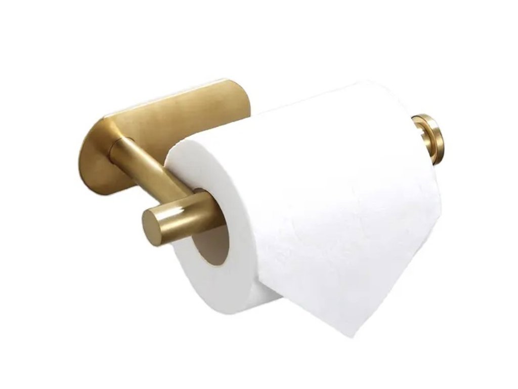 - Samolepící držák na toaletní papír ve zlaté barvě.