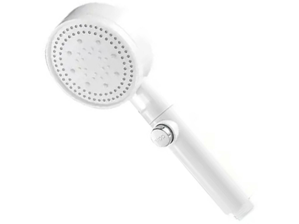Bílá sprchová hlavice. Určeno pro instalaci do standardní sprchové hadice. Hlavice má funkci volby režimu sprchování (5) a funkci STOP, která zastaví proud. Vestavěný ventilátor zvyšuje výkon sprchy bez zvýšení spotřeby vody.