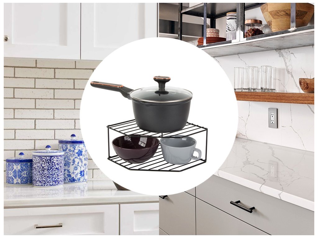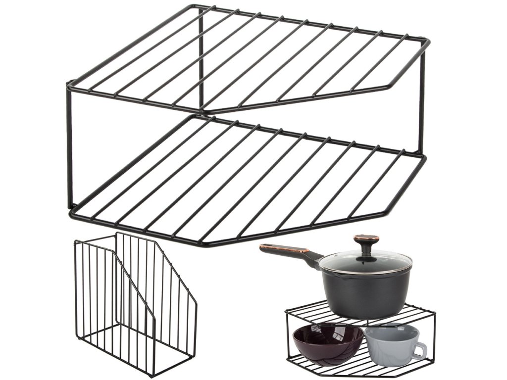 KOVOVÁ KUCHYŇSKÁ ROHOVÁ STOJÍCÍ POLICE DVOUÚROVŇOVÁ KOUPELNOVÁ POLICE