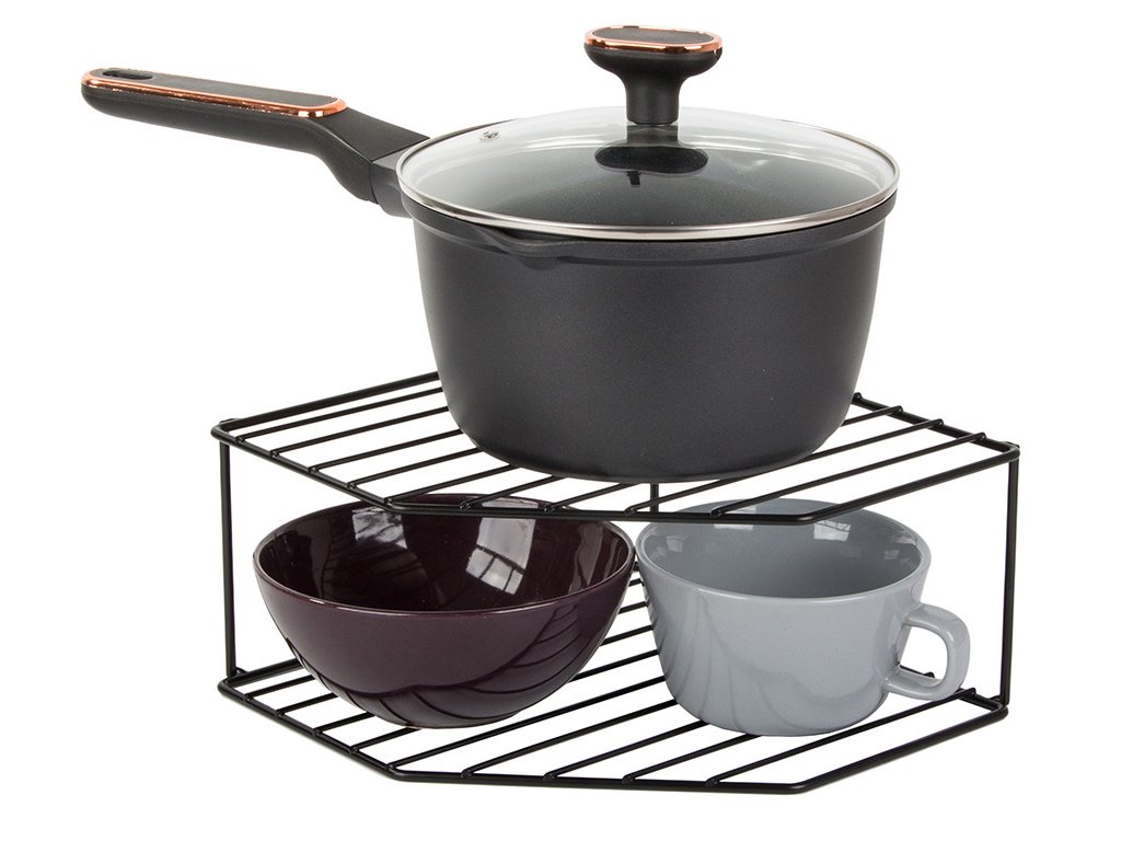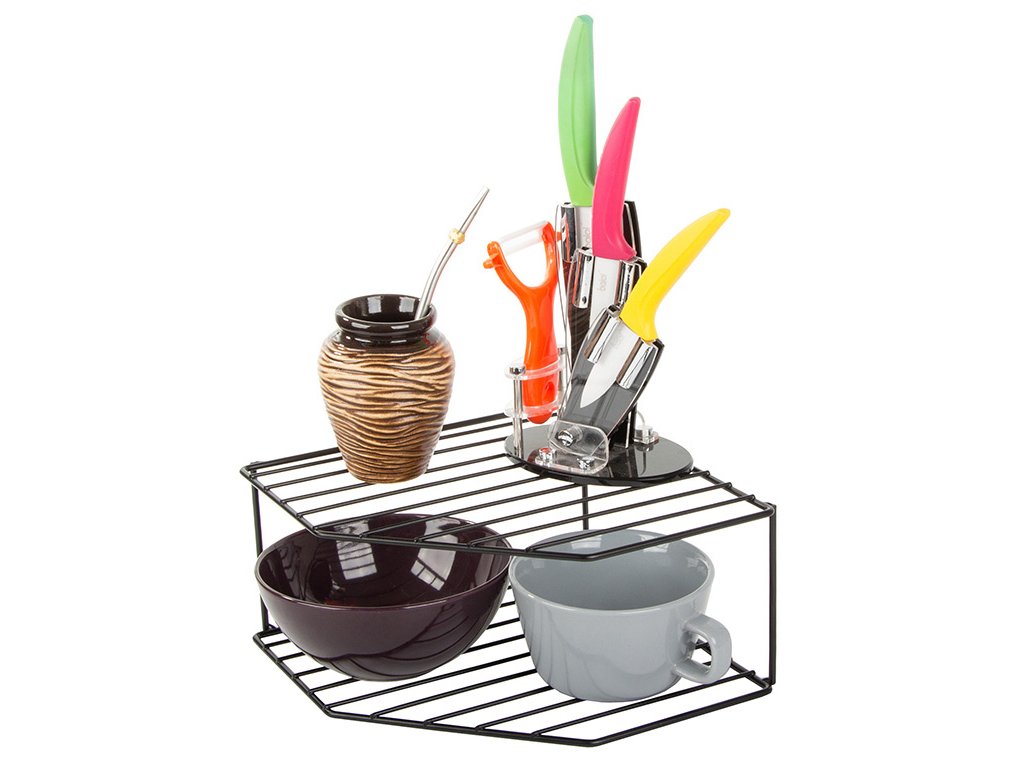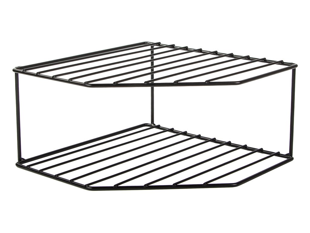 Kuchyňská rohová stojící kovová police dvouúrovňová koupelnová police