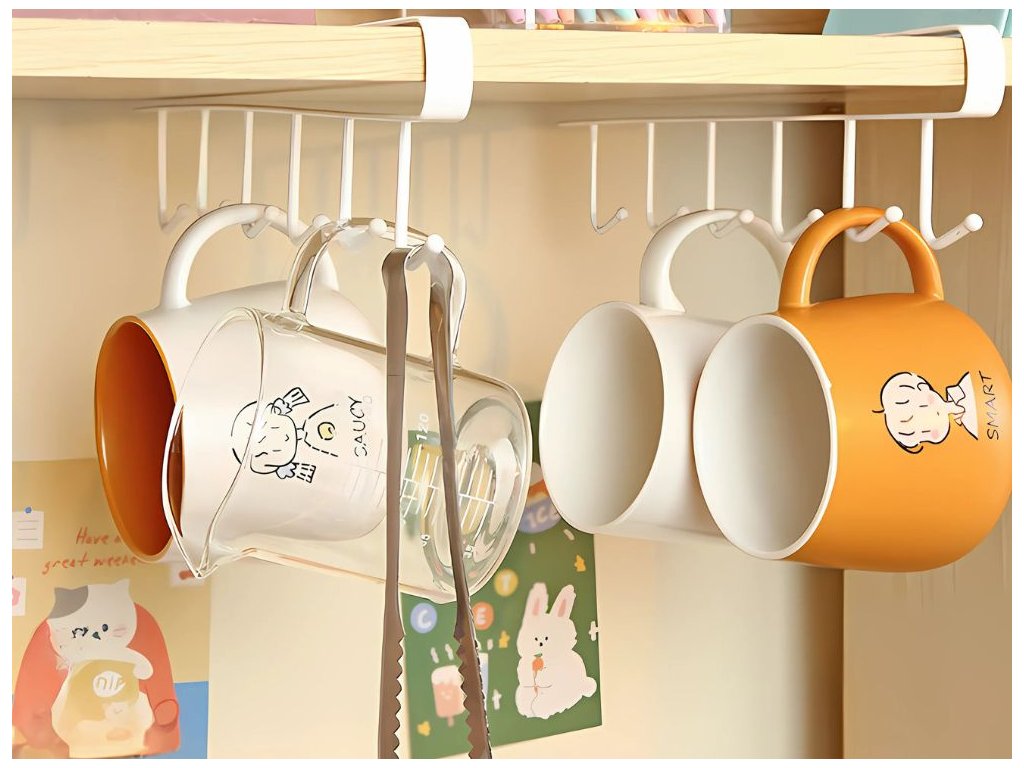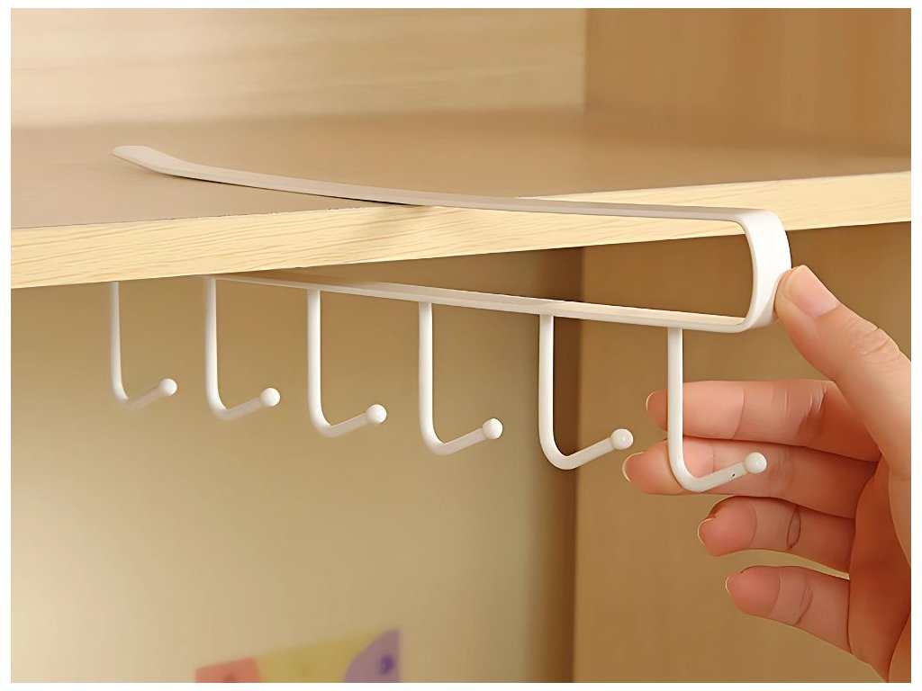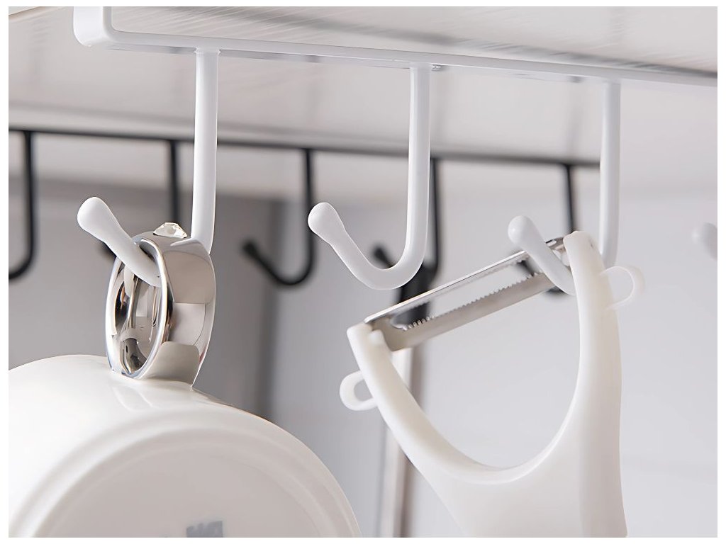 Kovový věšák se 6 háčky je praktickým a elegantním řešením pro organizaci kuchyně. Díky instalaci pod skříňku poskytuje úsporu místa a snadný přístup ke každodennímu nádobí. Je vyroben z odolného kovu a vyznačuje se vysokou odolností proti deformaci a zatížení.