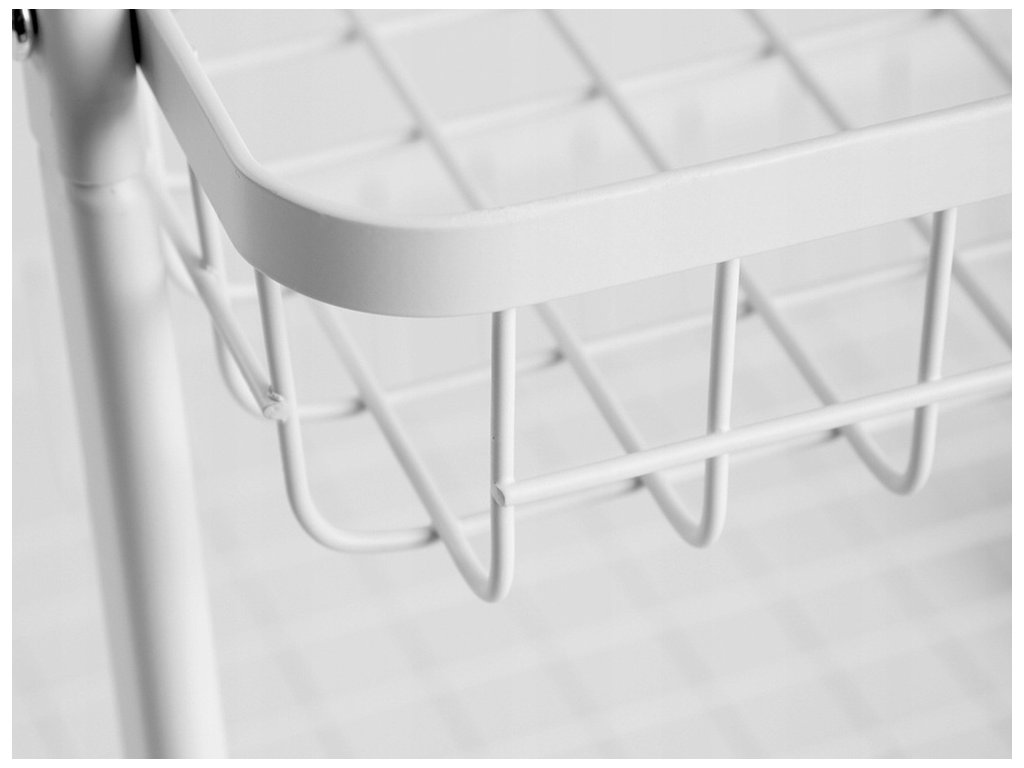 Každý ze tří košů byl umístěn ve správné výšce, aby byl zajištěn snadný přístup a přehled o obsahu. To je ideální pro ty, kteří si cení pořádku a organizace ve svém prostoru. Koše jsou vyrobeny z kovové síťoviny, která usnadňuje jejich údržbu a zabraňuje hromadění vlhkosti.