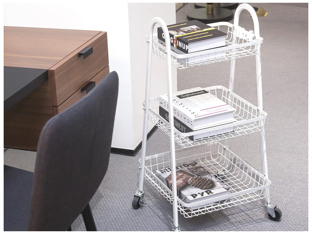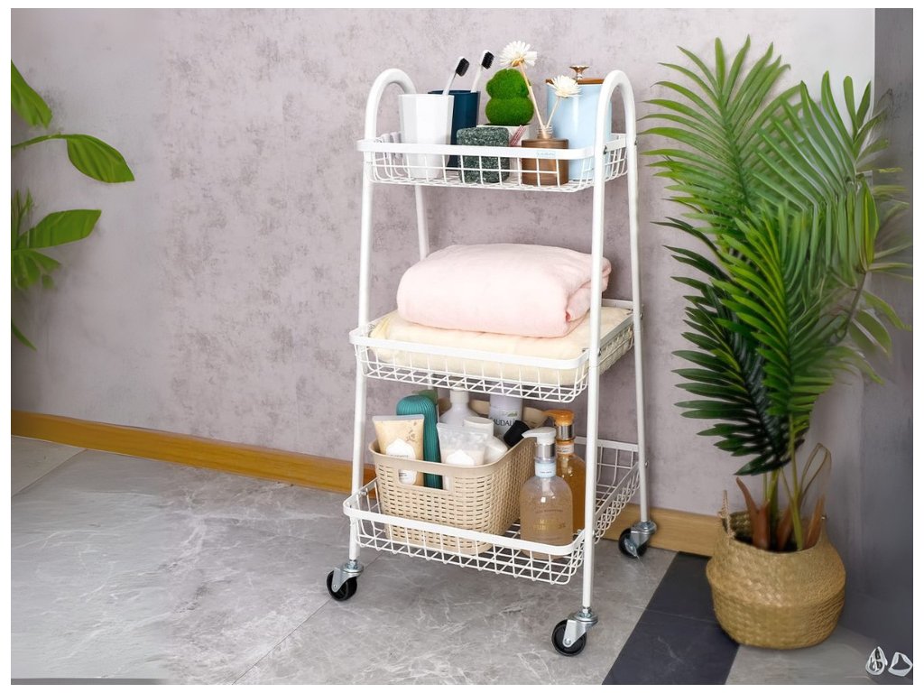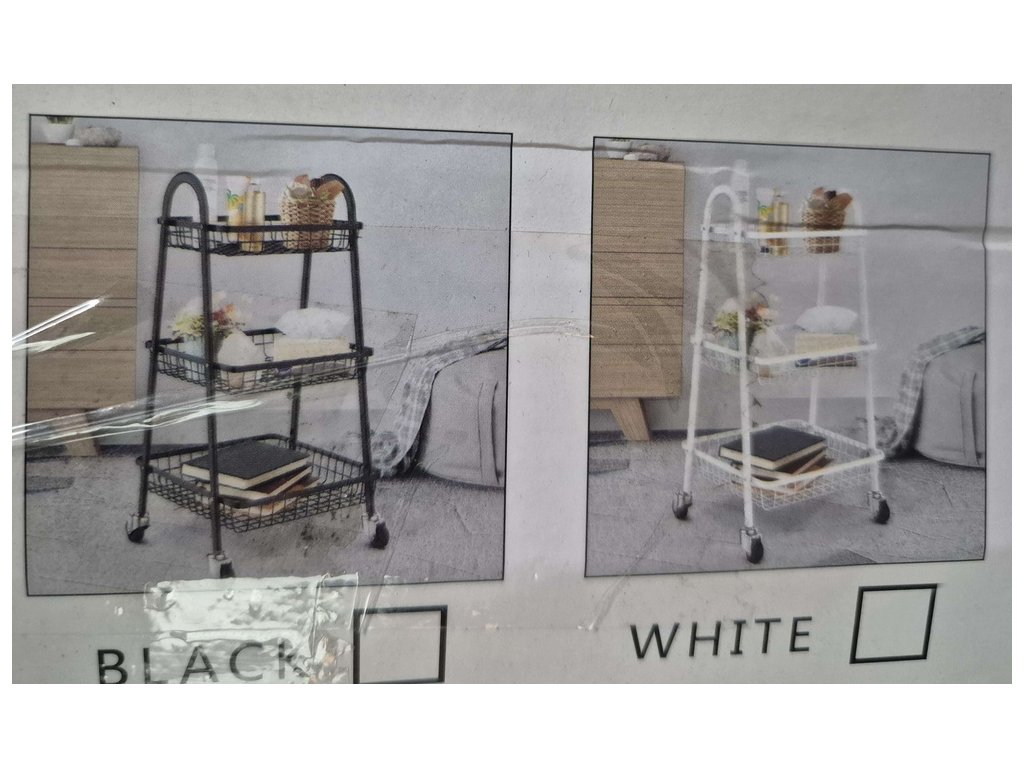 Kovová police na kolečkách je praktickým a elegantním řešením pro organizaci prostoru v koupelně, kuchyni, obývacím pokoji, dětském pokoji, kanceláři nebo třeba kosmetickém salonu. díky třem objemným úrovním poskytuje dostatek úložného prostoru pro ručníky, kosmetiku, čisticí prostředky, knihy nebo kuchyňské doplňky. Díky univerzálnímu černému barevnému provedení se regál dokonale přizpůsobí různým stylům interiéru.