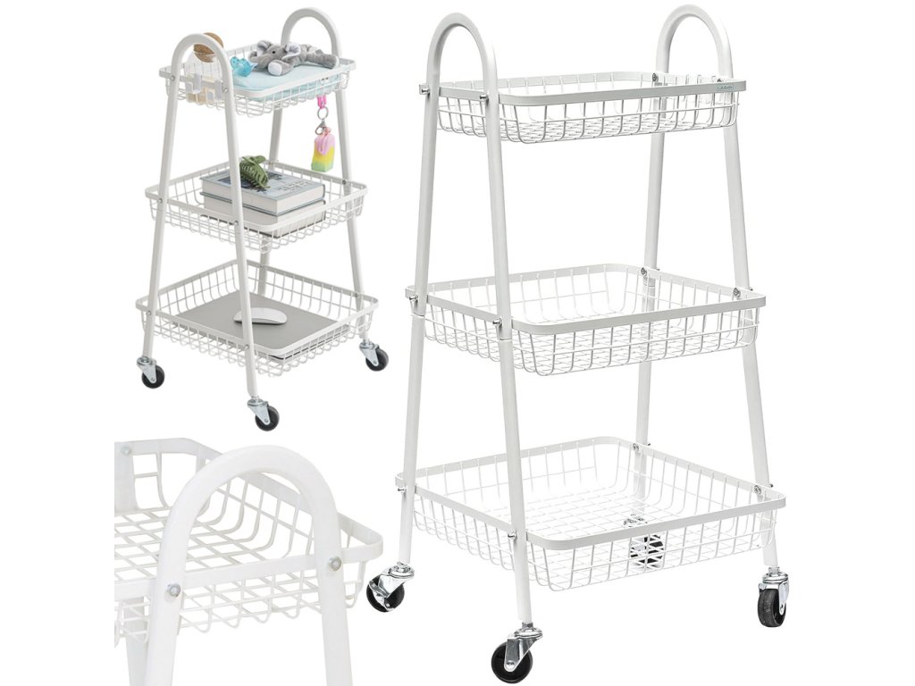 Police kuchyňská skříňka do koupelny na kolečkách kovový stojan tři úrovně 3