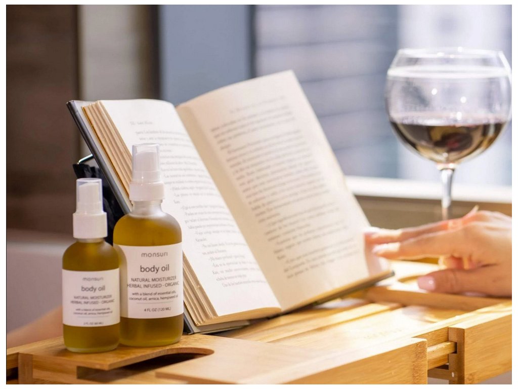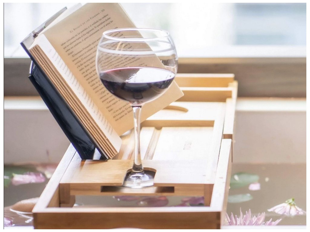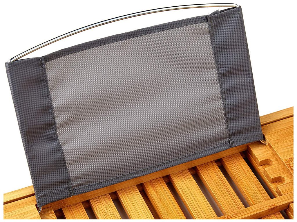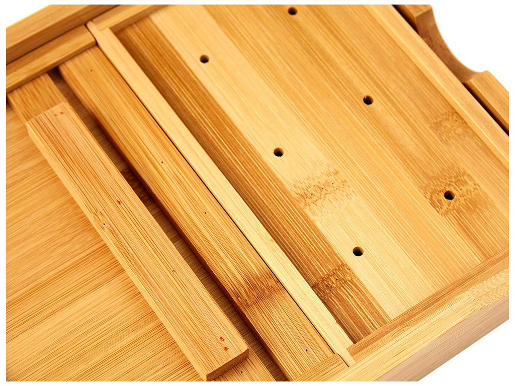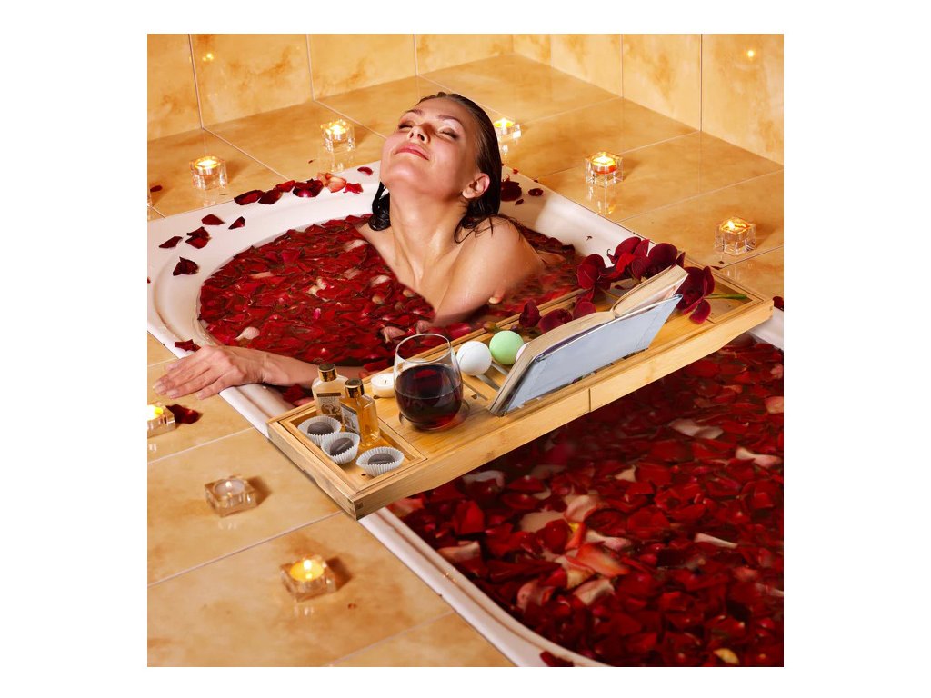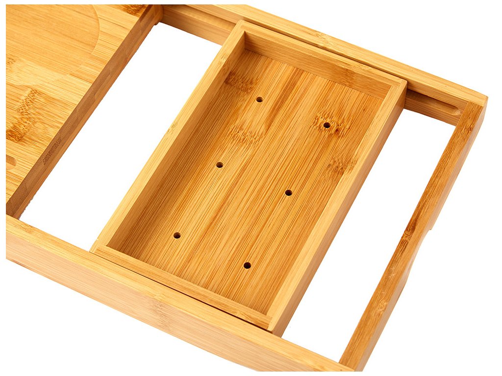 Tento vysoce kvalitní servírovací stolek, který je vyrobený z bambusu pro dokonalou relaxaci ve vaně s odkládací plochou, místem pro odkládání mýdla, výklopným stojánkem na knihu a držákem na skleničku na víno.