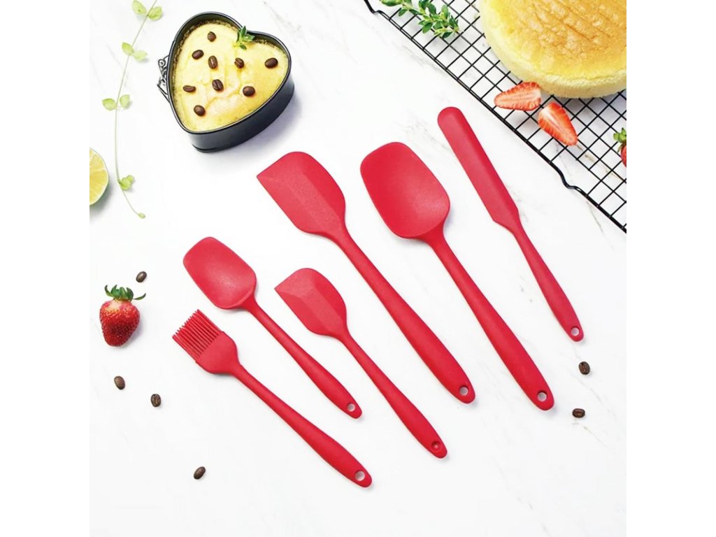 Multifunkční a kompletní sada kuchyňských doplňků. Sada obsahuje až 6 nástrojů, které jsou nenahraditelné v každé kuchyni. Vyrobeno z lehkého a odolného materiálu, který nepoškrábe povrch nádobí (silikon). Odolný vůči vysokým teplotám a bezpečný při kontaktu s potravinami.