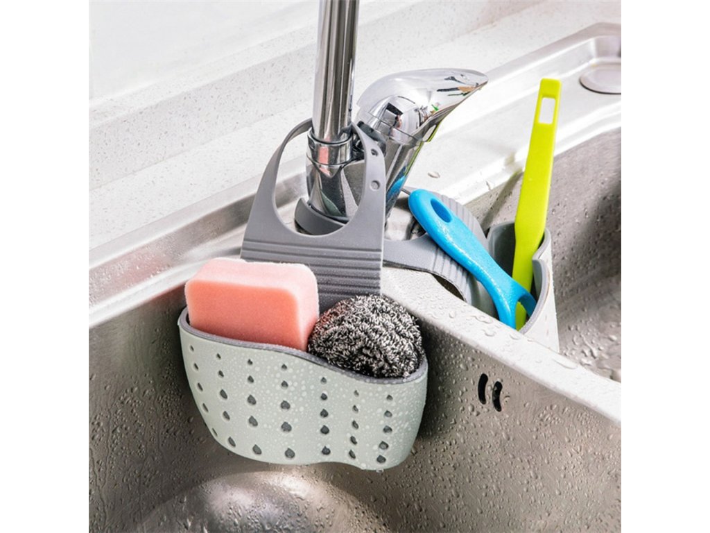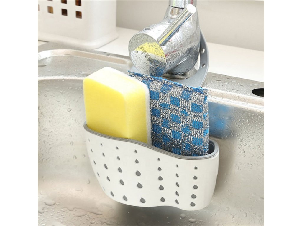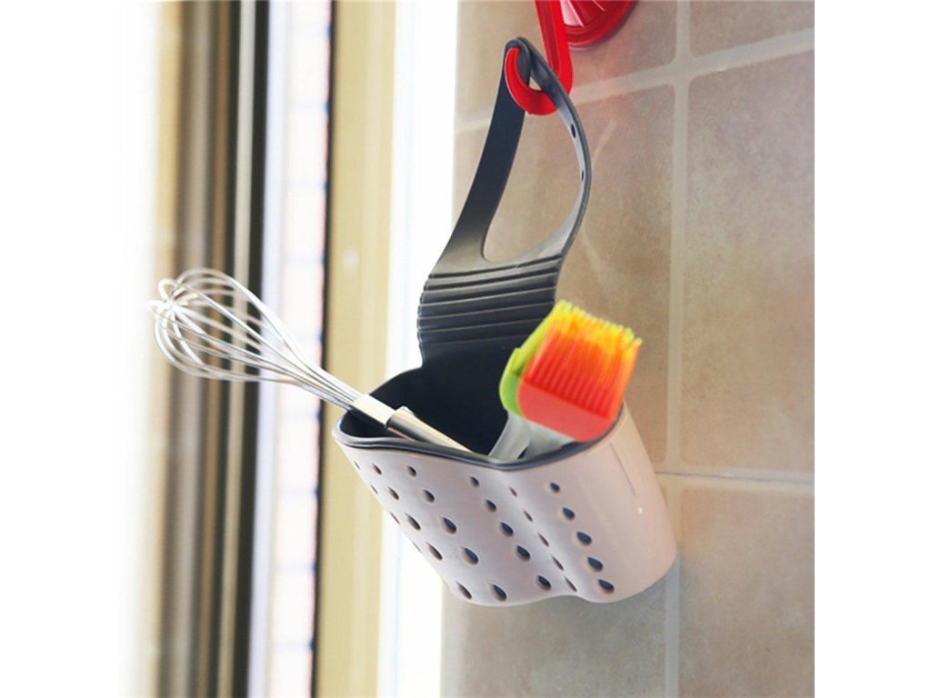 Funkční kuchyňský organizér na jednomiskový dřez. Usnadňuje udržování pořádku v kuchyni. Skvěle funguje jako nádoba na houbičky, kartáče a drátěnky. Perforované dno umožňuje nepřetržitý odtok vody. Snadná instalace na kuchyňskou baterii (plastový háček vzadu).