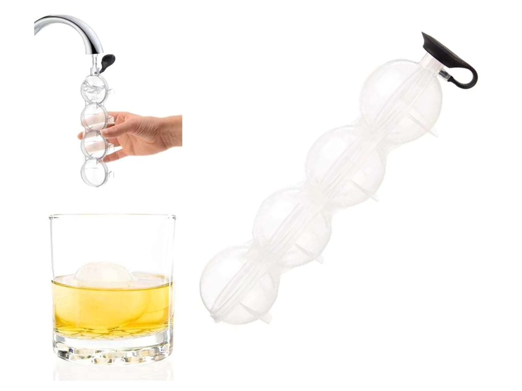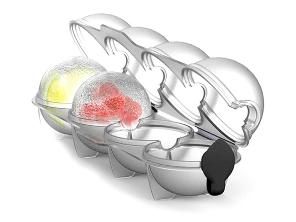 - Forma na ledové kostky se 4 kuličkami, díky které snadno vyrobíte dokonale kulaté ledové kuličky pro chlazení nápojů.