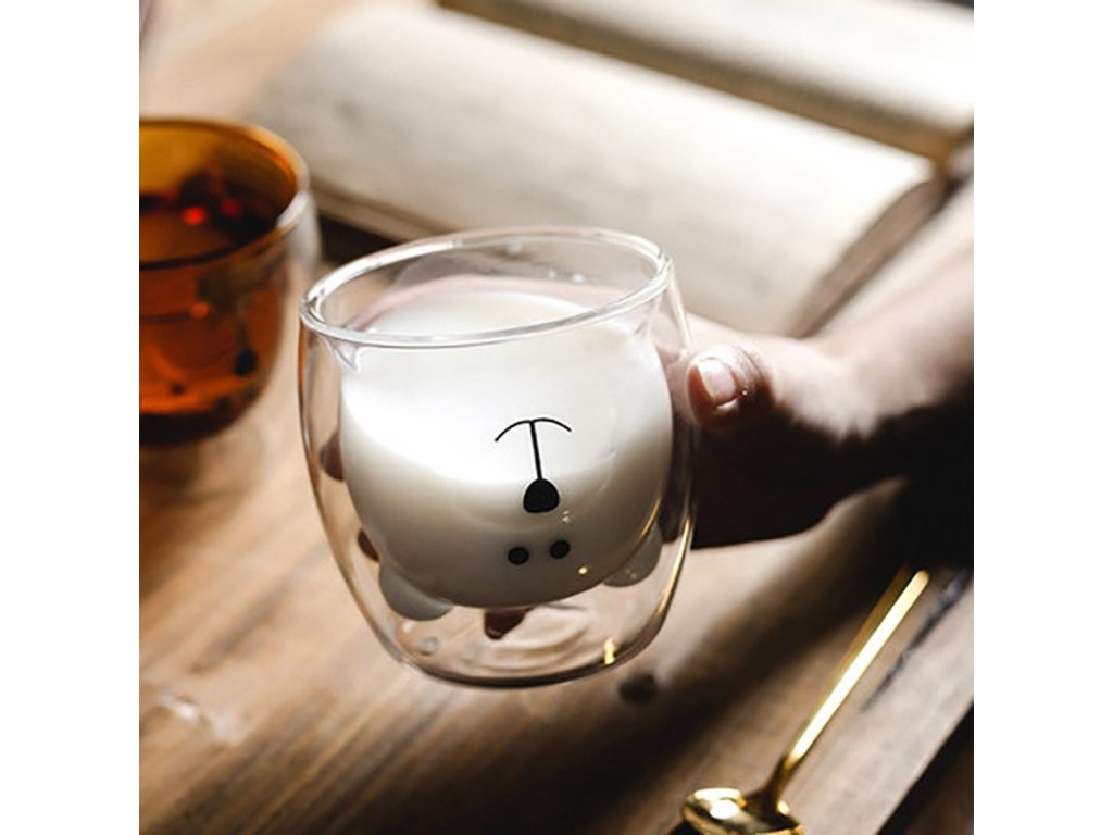 Dvojité termosklo o objemu 250 ml. Lehké a pevné vyrobené. Dvojité sklo zabraňuje náhodnému opaření a také umožňuje, aby nápoj zůstal horký déle. Estetický potisk a vnitřek skla ve tvaru medvídka poskytují úžasný vizuální efekt.