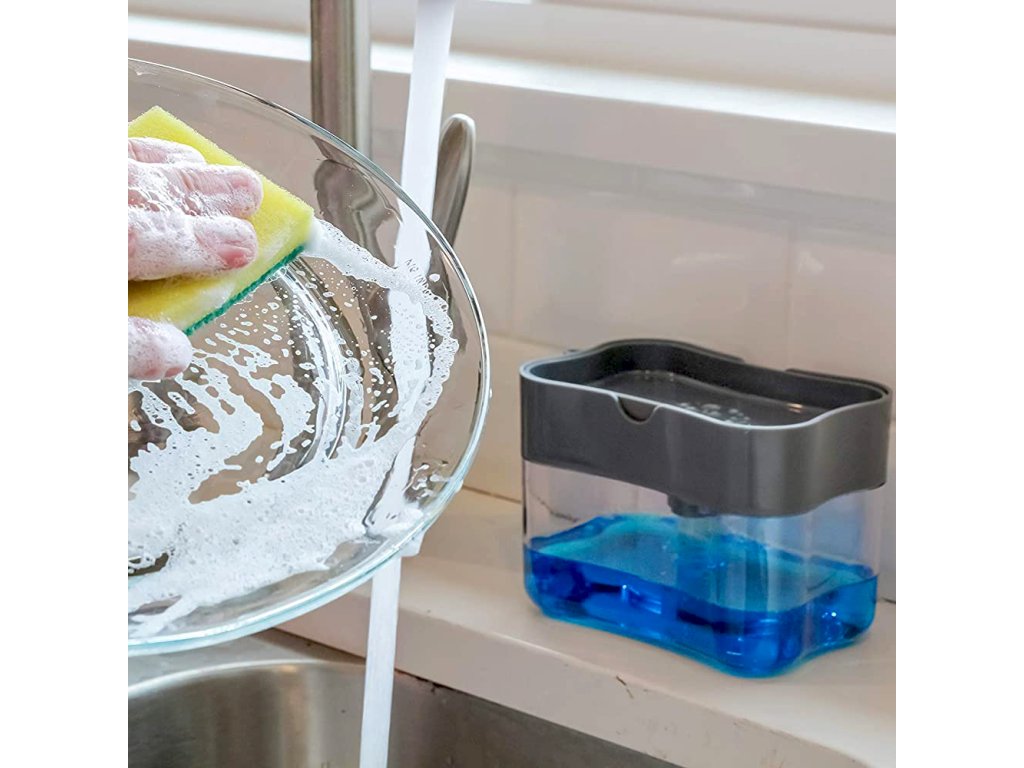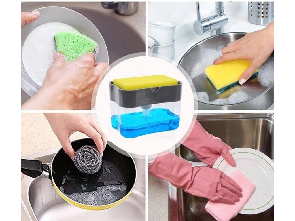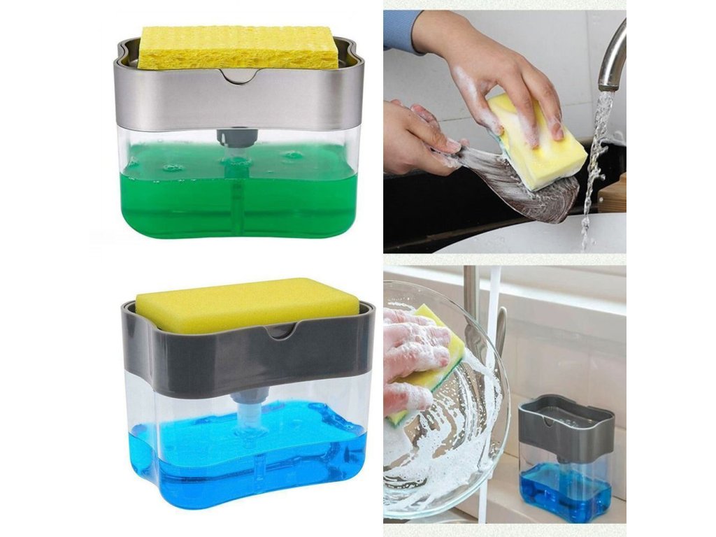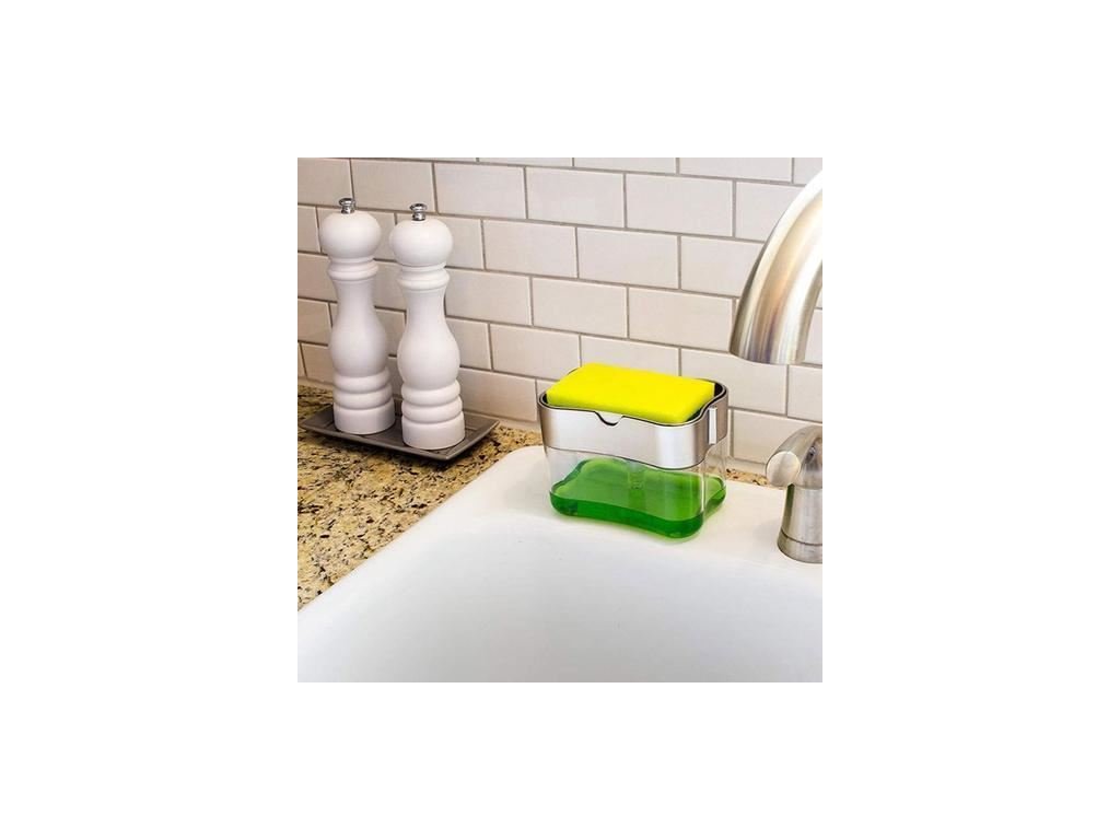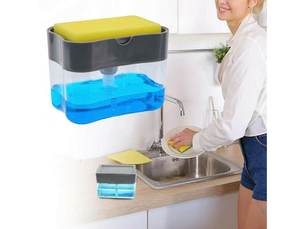 Už žádný nepořádek v okolí dřezu. Saponát nebudete mít rozlitý všude okolo díky inteligentně navrženému dávkovači. V balení dostanete houbičku a dávkovač. Do dávkovače nalijete váš oblíbený saponát a několikrát houbičkou stlačíte vrchní část dávkovače. Dávkovač vám spustí požadované množství saponátu.