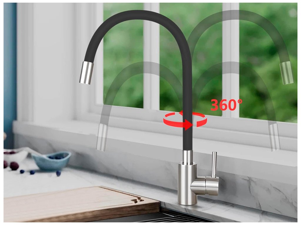 Moderní kuchyňská baterie s flexibilní výtokovou trubicí je ideálním řešením pro každou kuchyni. Díky flexibilnímu provedení můžete libovolně nastavit směr proudu vody, což usnadňuje oplachování nádobí, zeleniny nebo plnění hrnců. Otočná konstrukce o 360° navíc umožňuje úplnou mobilitu - ideální projednoduché i dvojité dřezy.