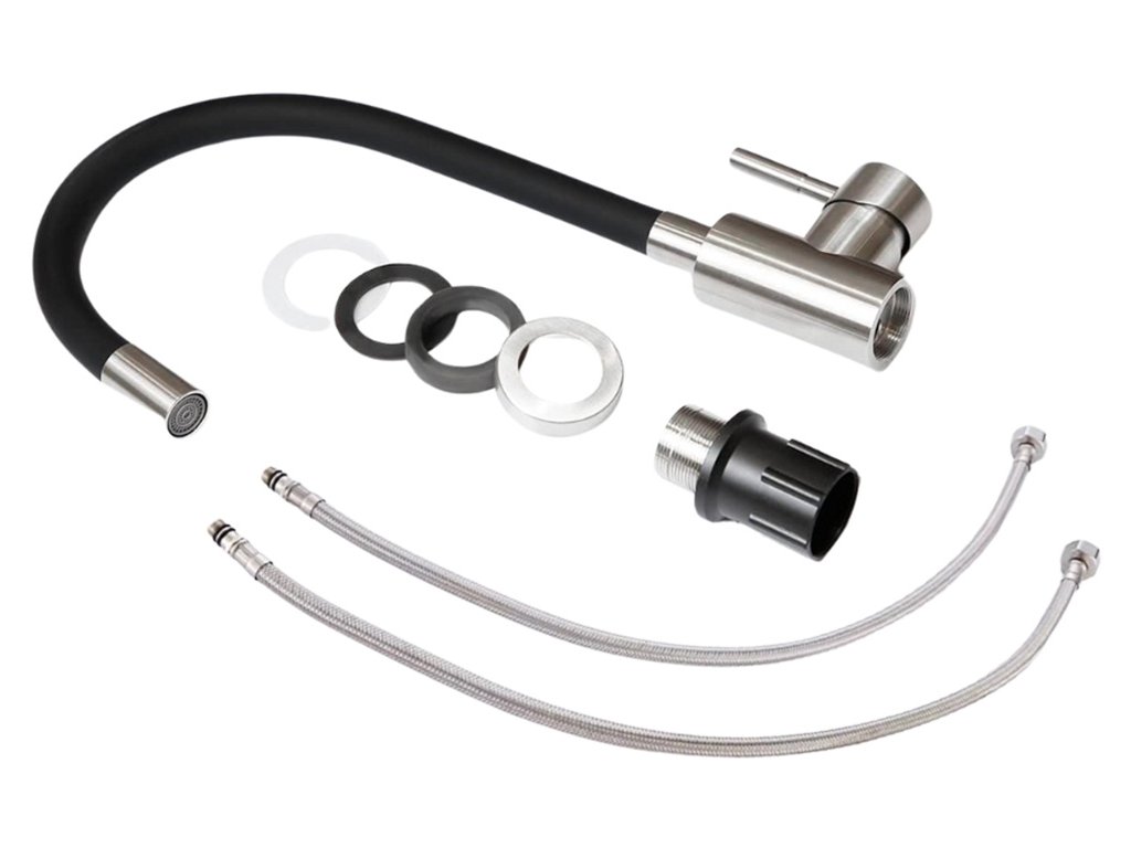 Tělo baterie je vyrobeno z vysoce kvalitní nerezové oceli typu 304, která zaručuje odolnost proti korozi, rzi a mechanickému poškození. Povrchová úprava z kartáčované oceli působí moderně a černá výtoková trubice dodá každé kuchyni elegantní vzhled. Jedná se o výrobek navržený tak, aby vydržel mnoho let.