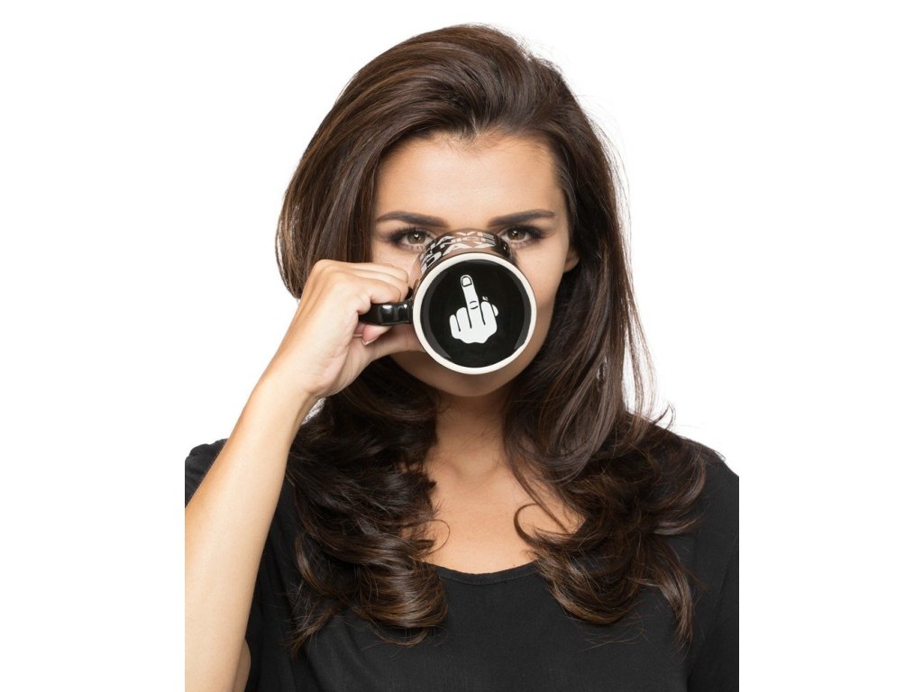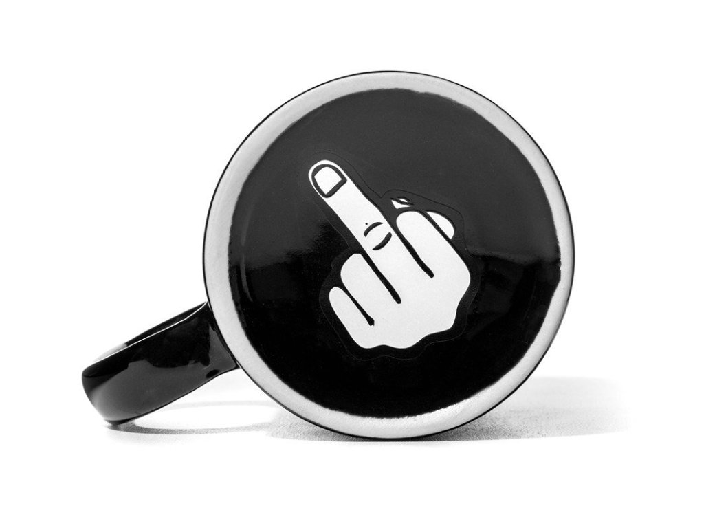 Zajímavý hrnek s úchytem na prostřední prst. Perfektní způsob, jak ukázat, co tím myslíte.