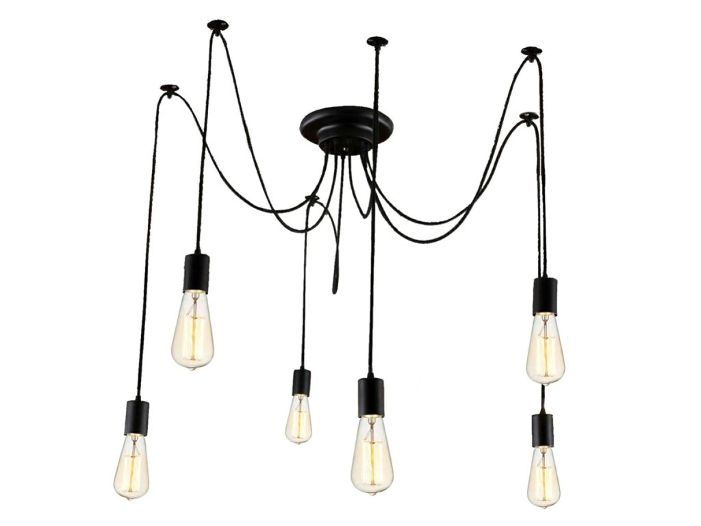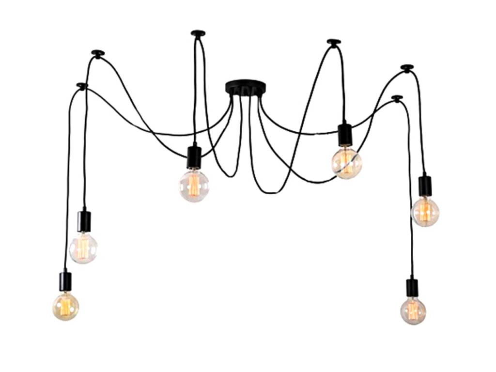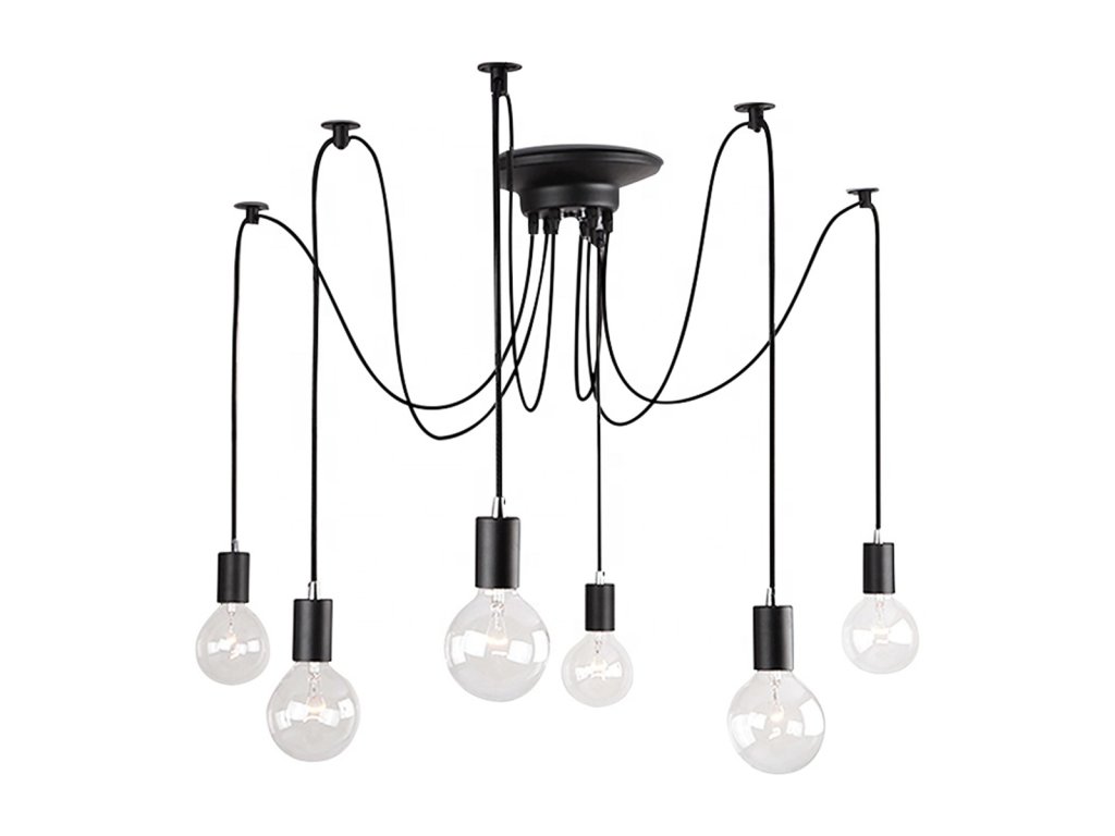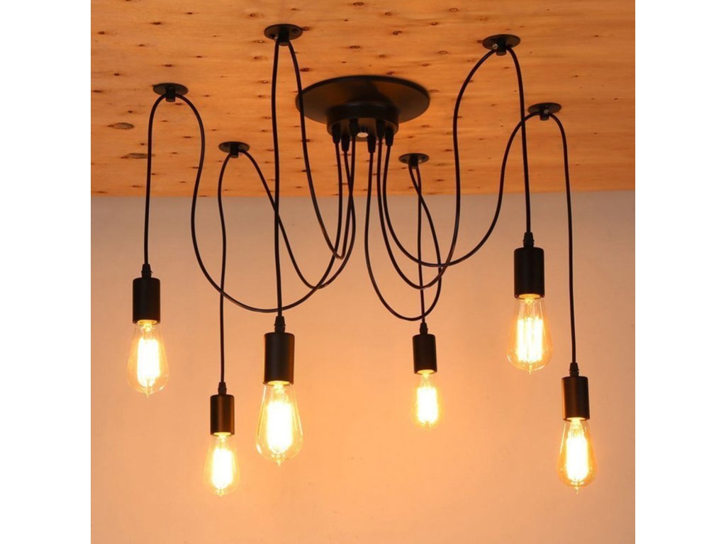 Nádherný dekorativní prvek - pavoučí lustr s až 6 světelnými body! Všechny světelné body mají 115 cm dlouhý kabel zakončený paticemi na žárovky E27. Je možné ji zkrátit, což jí umožní lépe se přizpůsobit podmínkám uvnitř místnosti. Je to skvělý nápad pro zdobení elegantních pokojů ve stylu podkroví nebo pro rozjasnění tmavých koutů! Skvěle se hodí jak ke klasickým kulatým žárovkám E27, tak ke všem dekorativním se stejným závitem!