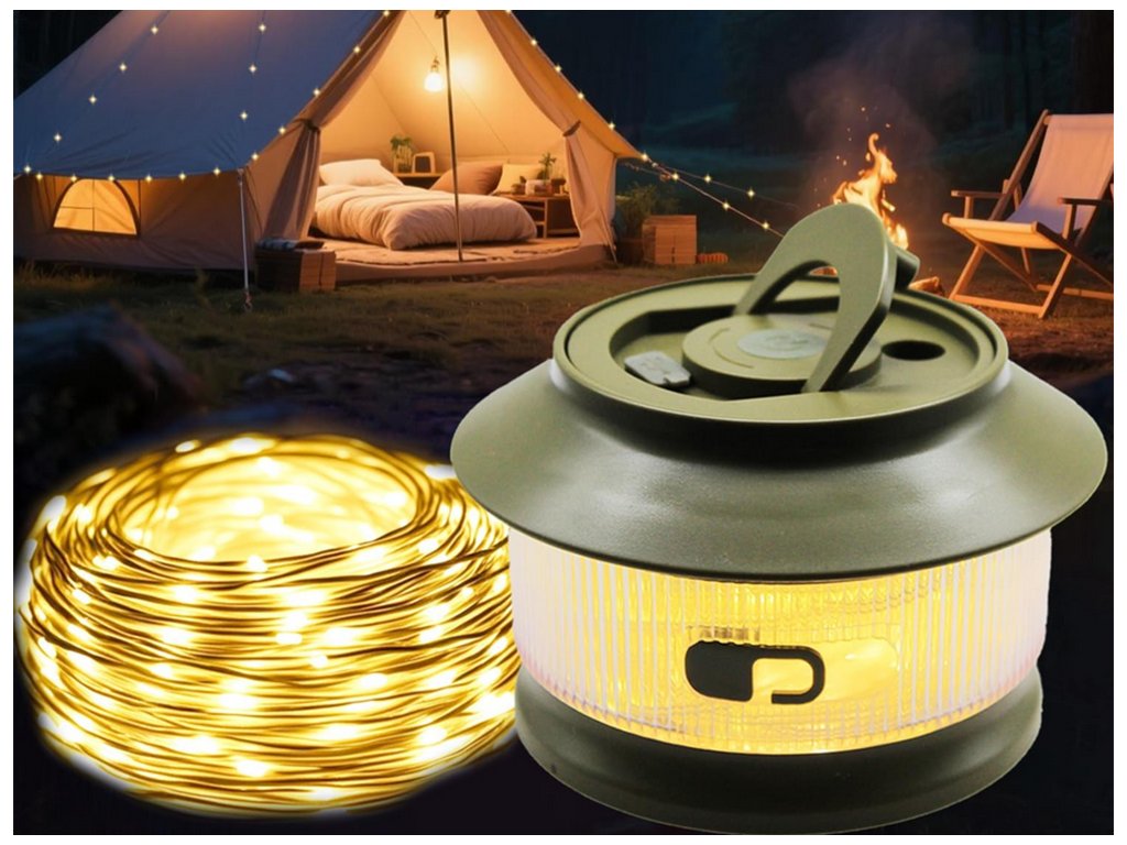 ✅ KEMPINGOVÁ LAMPA S GIRLANDOU - DVĚ SVĚTELNÉ ZÓNY V JEDNOM PŘÍSTROJI
