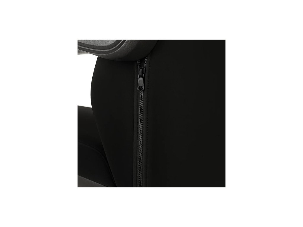 promyšlený systém montáže - ochranný potah je rozdělen na 4 části (opěradlo, sedák, 2 loketní opěrky) a každá část má individuální upevňovací systém, Opěradlo se zapíná na zip , což zajišťuje perfektně padnou a zbývající prvky mají elastické pásky, které udrží je na místě i při intenzivním používání