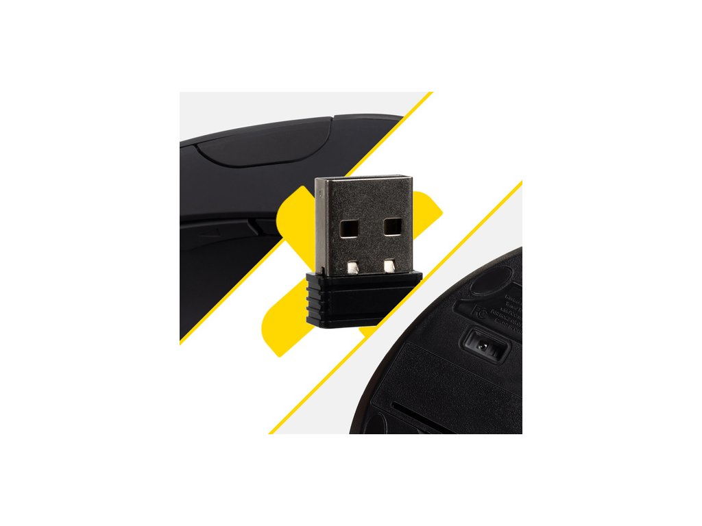 - USB přijímač skrytý ve spodní části myši - díky tomu ho nikdy neztratíte - je bezpečný, vždy po ruce a připravený k použití, ideální řešení pro lidi, kteří často používají svůj notebook na různých místech a cení si mobility