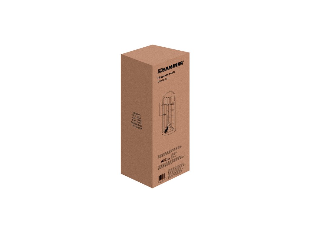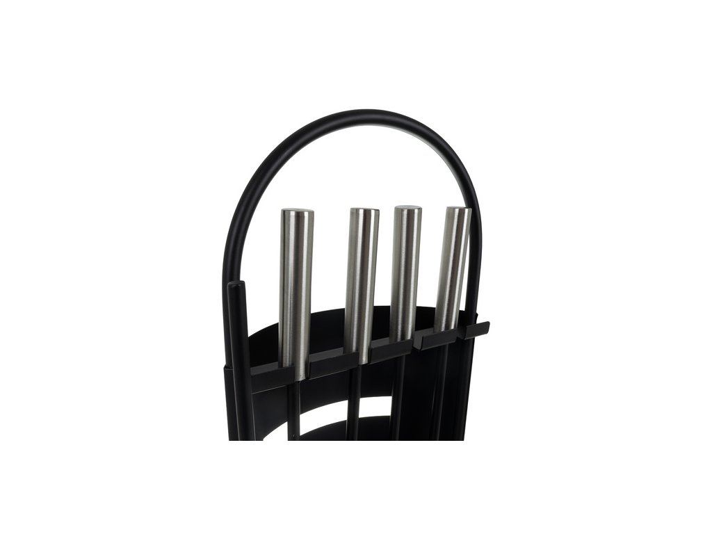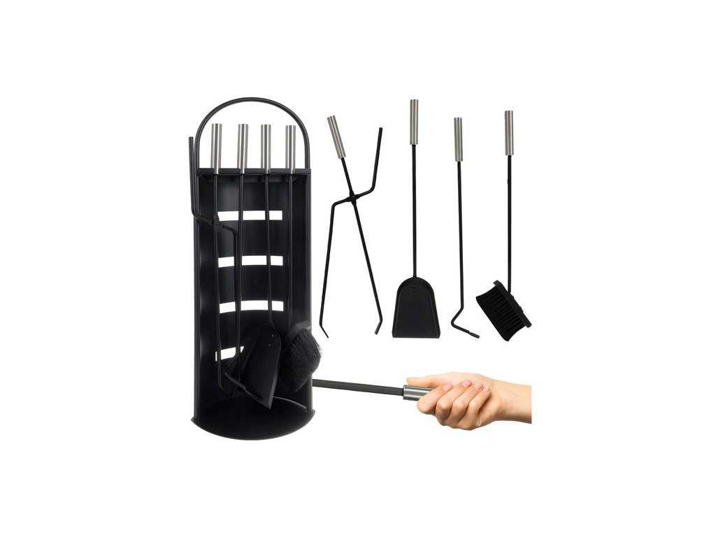 Sada 5 v 1 – sada obsahuje všechny potřebné prvky pro údržbu krbů a jiných typů ohňů: kleště, lopatu, koště a pohrabáč , díky čemuž je sada všestranná. To vše se vejde na přiložený stojan .