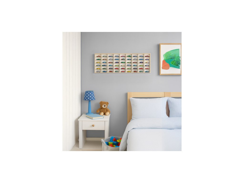 - hodí se do dětského pokoje - díky svému jednoduchému tvaru police nejen organizuje prostor, ale také vzbuzuje obdiv a motivuje ke sběratelství