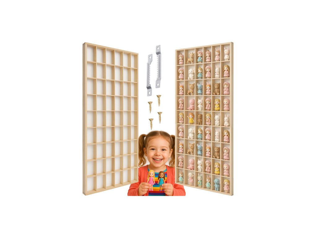 Dřevěná police pro panenky 10cm 54 přihrádek KRUZZEL!