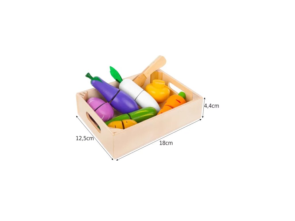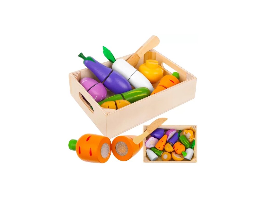 - SBĚR BAREVNÉ ZELENINY A OVOCE - sada precizně reprodukované zeleniny v krabici umožní zajímavou zábavu doma, v obchodě nebo při vaření. Živé a šťavnaté barvy upoutají pozornost dítěte a povzbudí je ke hře. Obsahuje: mrkev, brambory, houby, cibuli, okurku, lilek, kedlubnu, nůž a krabici.