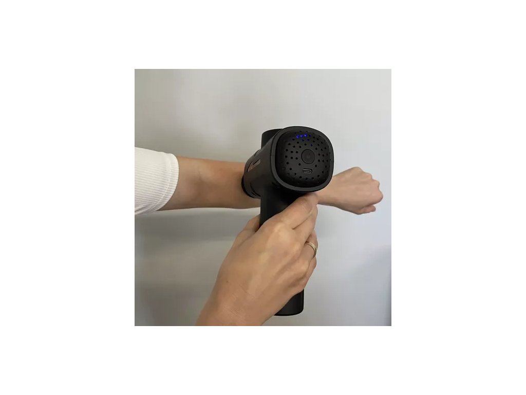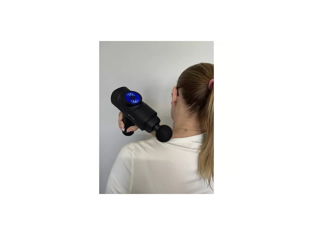 - 6 ÚROVNÍ INTENZITY MASÁŽE - vibrační pistole má 6 stupňů intenzity masáže! To je velký rozsah umožňující individuální přizpůsobení rychlosti svalům, na které má být použit . Intenzita je vidět na LED indikátoru práce a mění se pomocí citlivého tlačítka. Stačí se ho jemně dotknout – ke změně režimu ho nemusíte nutit.