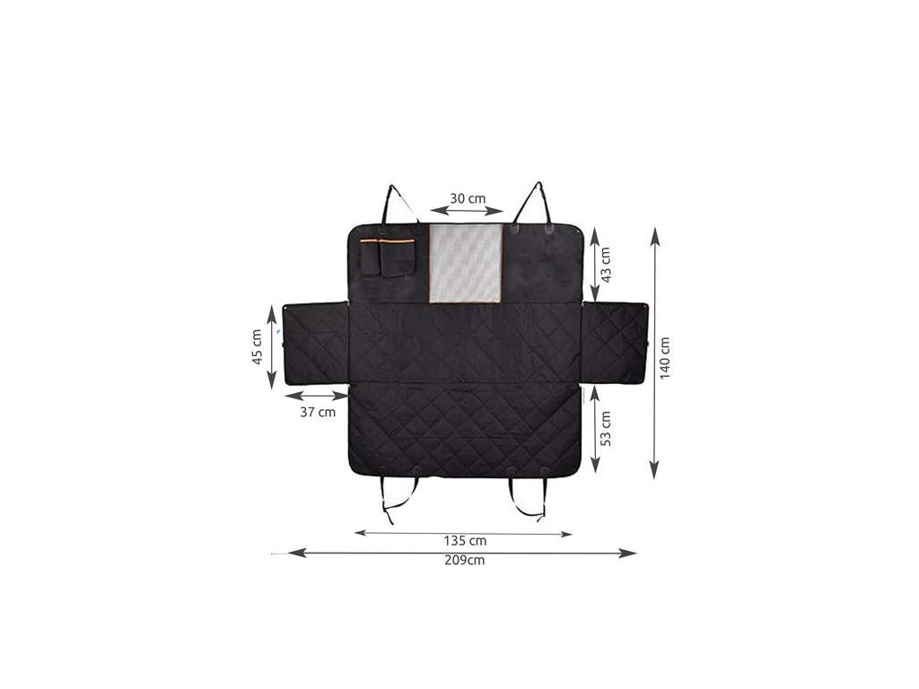 - SNADNÁ INSTALACE A BEZPEČNOST – stačí rozložit rohož na zadní sedadlo auta a připevnit ji pomocí háčků k opěrkám hlavy a bočním madlům; Speciální otvory pro pásy umožňují bezpečné připevnění vašeho mazlíčka.