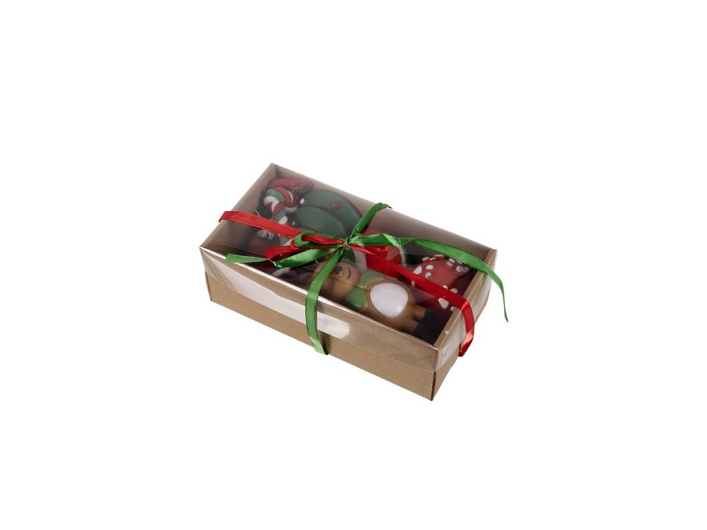 - SPECIFIKACE - materiál: guma, plast, tkanina; barva: červená, oranžová, zelená; počet hraček: 6; rozměry dárku: 7,8 x 22,5 x 11,5 cm; hmotnost: 308 g; hmotnost balení: 387 g.