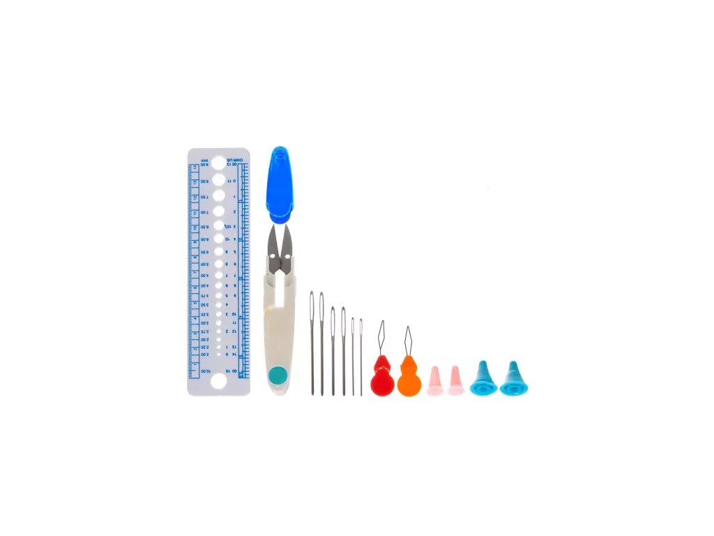 vhodné i pro začátečníky - jedná se o univerzální sadu pro začátečníky i pokročilé uživatele, ve které najdete vše, co potřebujete k nastartování nebo rozvoji své vášně, 21 háčků o velikosti od 2,0 do 8,0 mm, počítače ok, pravítko se stupnicí, jehly, zavírací špendlíky, návleky na jehly, držáky jehel, nůžky, krejčovský metr, rozparovač a další příslušenství vám umožní volně realizovat nejrůznější projekty – od tenkých krajek po husté tkaniny