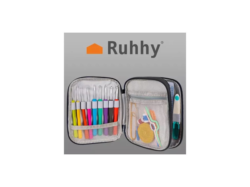 Sada na háčkování, háčky 2,0-8,0, doplňky, vše v 85dílném XXL pouzdře, také k učení a jako dárek RUHHY!