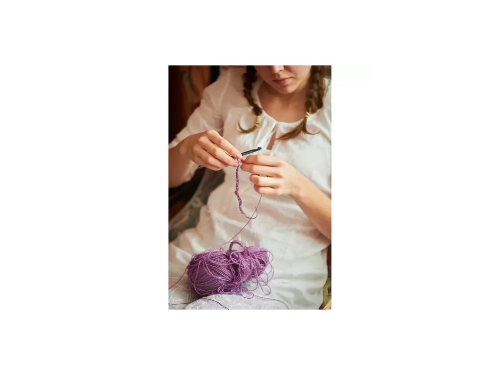 - Ujistěte se, že nitě a příze jsou dobře připravené a nemají žádné uzly, abyste se vyhnuli náhlému trhnutí, které by mohlo způsobit ztrátu kontroly nad háčkem.