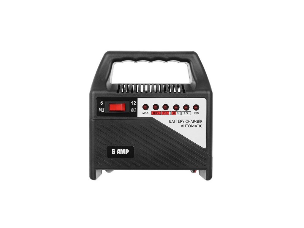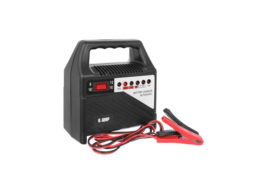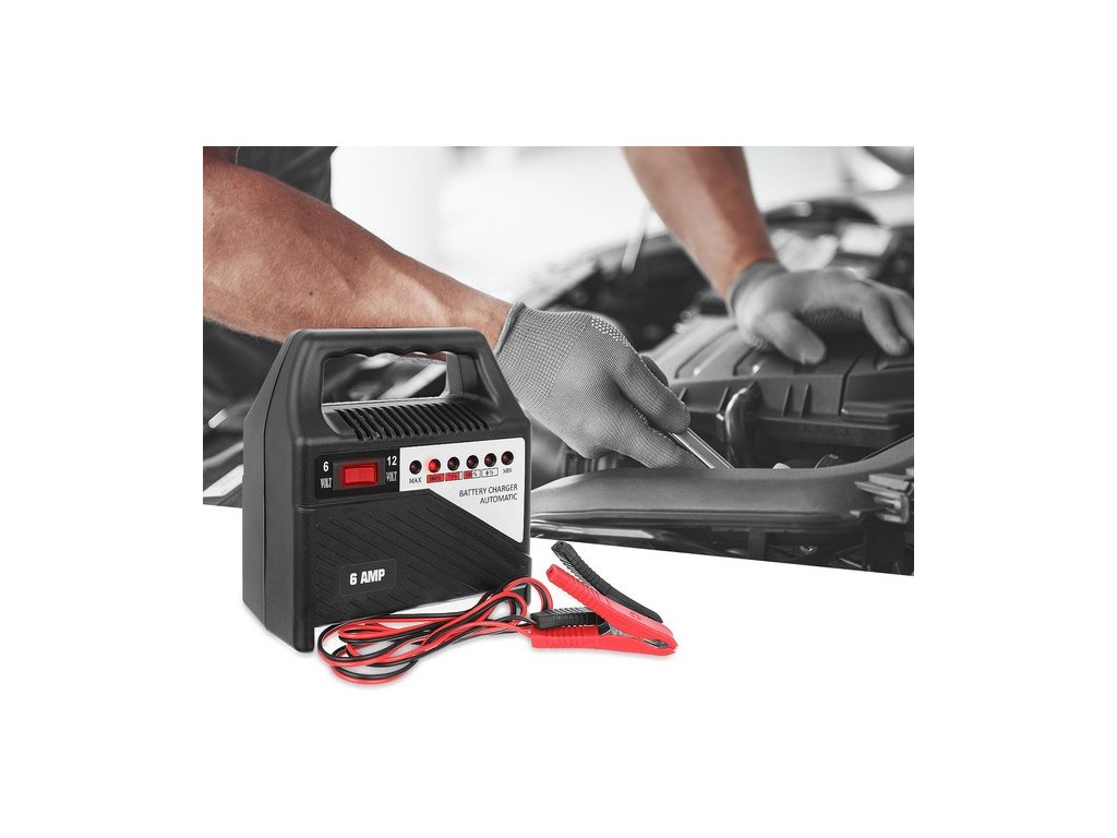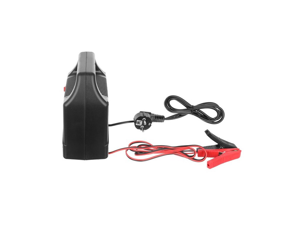 - 6V a 12V - zařízení má vypínač, díky kterému si před nabitím baterie můžeme zvolit 6V nebo 12V dle našich potřeb. Snadno nabije oblíbené autobaterie, motocykly a mnoho dalších baterií. je extrémně efektivní, efektivní a spotřebovává málo elektřiny.